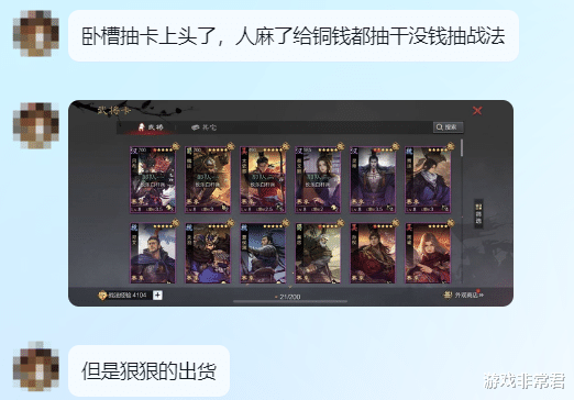 毕竟玩SLG的老哥们曾经吃的都是粗粮,抽卡都是算好资源紧紧巴巴的,现在这不花钱的细糠还是头一次尝试,这一口气把铜钱抽完,接下来的可就得做做任务、打打地块等明天的税收了。