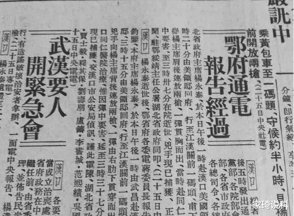 1936 年 10 月 25 日下午,汉口轮渡码头,新任湖北省政府主席杨永泰遇刺身亡。两名枪手行动敏捷,开枪速度极快,杨永泰的侍从根本来不及做出任何反应,刹那间,现场一片狼藉,惨状令人不忍直视。