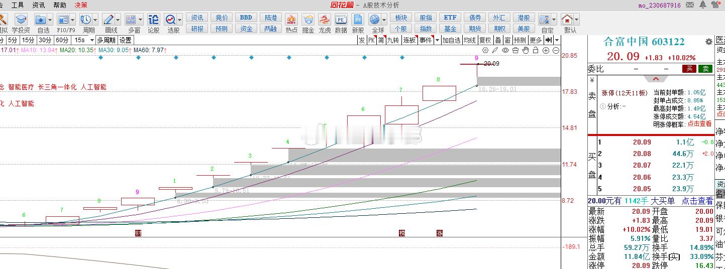 这个公司名字叫“合富中国”,大股东又是台湾的上市公司,所以就成了A股最好的炒作标的。12天11个板,基本翻了三倍了!