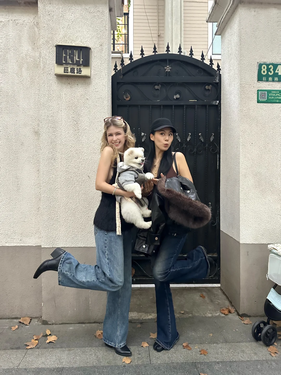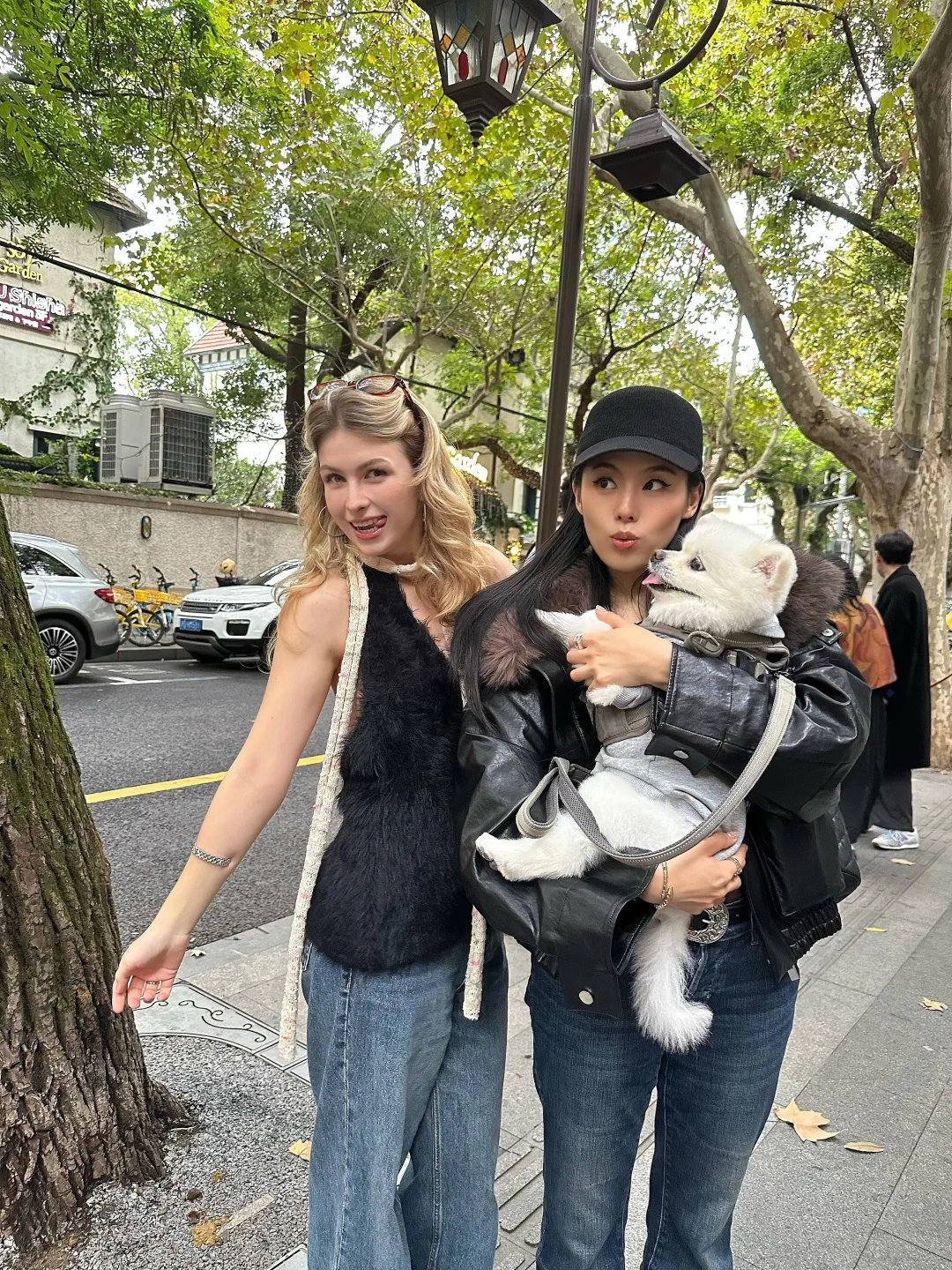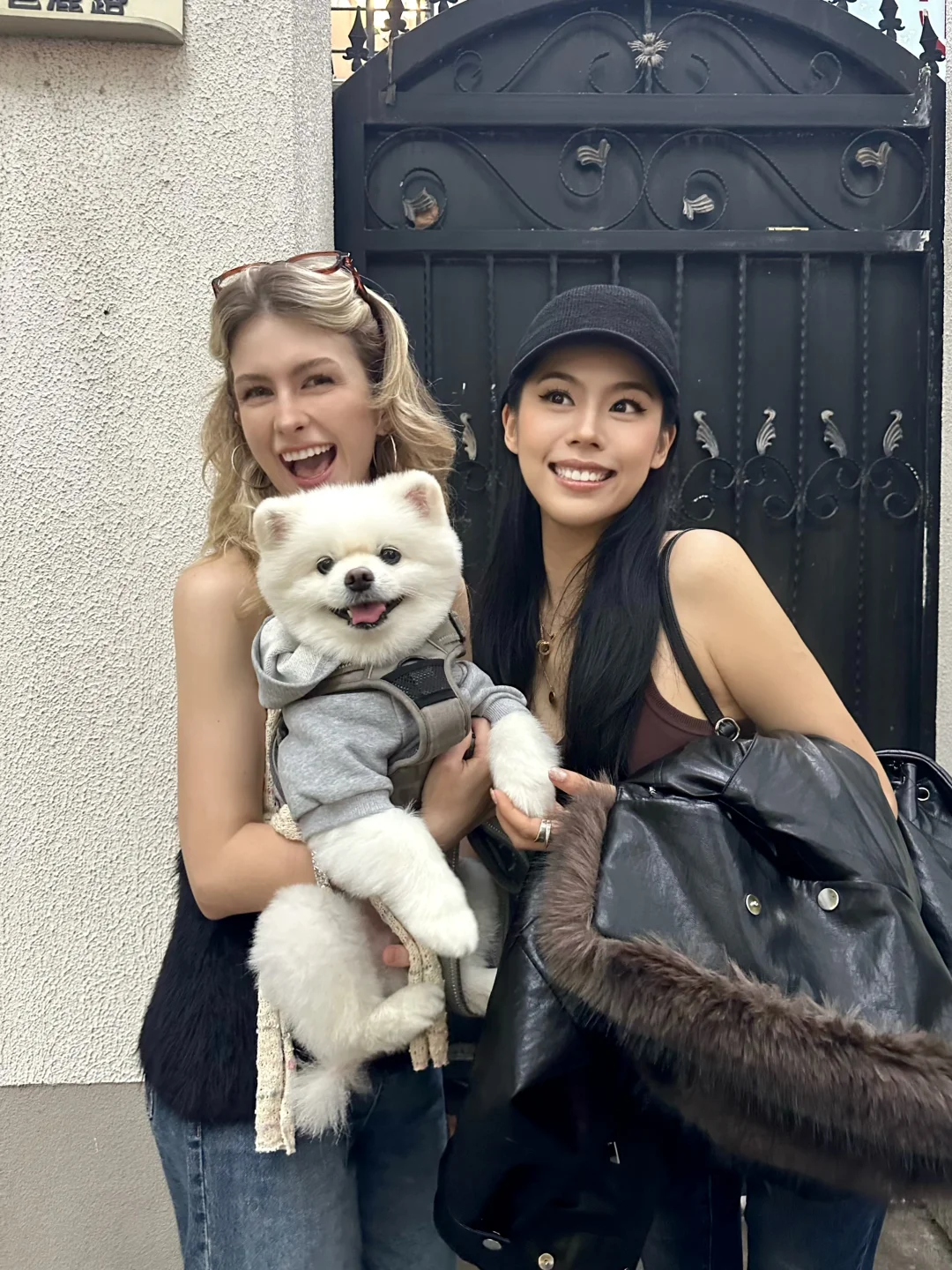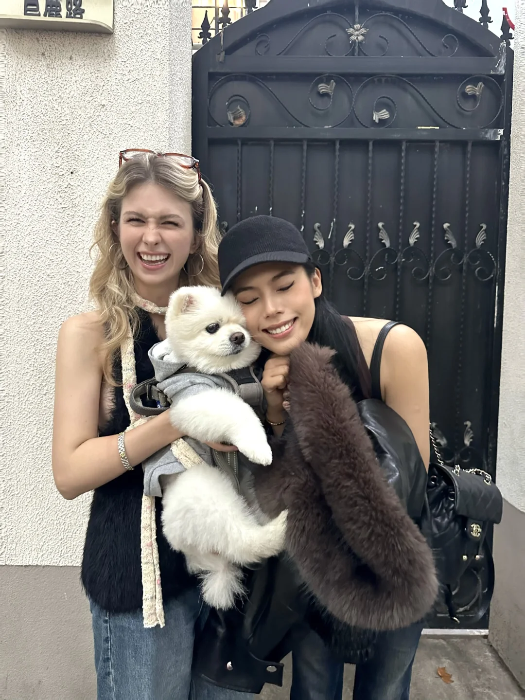 被两位漂亮女生包围着 活动只和美女一起玩 从不跟“狗兄弟”交朋友🐶