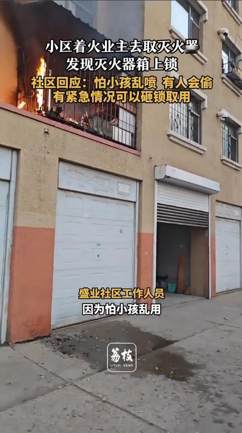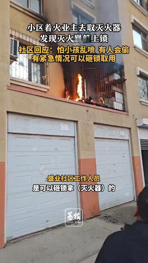 “离了个大谱!”近日,吉林省吉林市,一小区的房屋着火后,居民急忙去拿灭火器,却震惊的发现,灭火器箱子竟然被人锁上了,无奈只能去找其他地方的灭火器用。工作人员:怕小孩子喷着玩,紧急情况可以直接砸锁。 11月11日,吉林某小区的居民,提起这事还心有余悸。 那天傍晚,有人突然闻到刺鼻的焦糊味,顺着气味跑下楼,发现一楼商铺门口已经冒出明火,浓烟一个劲往上窜。 住户们瞬间慌了神,一边喊人一边四处找灭火器。 可跑到楼道消防栓旁,所有人都急得直跺脚,灭火器箱居然挂着把大锁,根本打不开。 大家分头往其他楼栋跑,来回折腾了好几分钟才取到器材。 万幸火势还没烧到易燃物,十几个人齐心协力扑了半天,总算把火扑灭,没造成人员伤亡,但不少住户的门窗都被熏黑了。 事后社区工作人员的解释,更是让人气不打一处来。 说给灭火器箱上锁,一是怕小区里的孩子拿来当玩具乱喷,二是担心器材被盗,没想到会真遇上火灾。 这种操作真不是个例,山东某小区去年就出过类似事故。 楼道电表箱起火,居民找到灭火器却发现被铁链锁着,等物业送钥匙来,小火已经烧穿了三间储藏室,损失超 10 万元。 《消防法》第 28 条明确规定,任何单位和个人不得损坏、挪用或者擅自拆除、停用消防设施。 物业私自上锁的行为,已经涉嫌违法,主管部门可处五千元以上五万元以下罚款。 消防部门的数据更让人揪心,火灾发生后的 3 分钟是黄金救援期。 这段时间内用就近灭火器灭火,成功率能达到 80%,一旦错过,火势蔓延速度会呈几何级增长。 国家应急管理部曾公布,近五年住宅火灾中,有 12% 是因为消防器材无法及时取用,导致小火酿成大灾。 很多时候,差的就是这几分钟,结果可能就是生死之别。 物业担心器材被盗、被孩子玩耍,这份顾虑能理解。 但完全有更合理的解决办法,没必要用 “上锁” 这种笨办法堵死生路。 现在市面上有透明防护箱、一次性塑料应急封条,还有带报警功能的装置。 孩子打不开,有人恶意挪用会触发警报,紧急时刻一撕就开,根本不耽误事。 更关键的是,不少居民其实不会用灭火器,光有器材也没用。 物业应该定期组织消防演练,教大家怎么拔销、瞄准、喷射,提高自救能力。 去年江苏某小区就做得很好,每季度组织一次演练,还在灭火器箱上贴了简易操作图。 后来真发生厨房起火,住户 1 分钟就扑灭了火,没造成任何损失。 主管部门也得加大巡检力度,不能光靠居民举报。 对私自锁闭、挪用消防器材的行为,发现一起查处一起,让物业不敢心存侥幸。 水火无情,灭火器从来不是摆着看的陈列品。 它是关键时刻能救命的 “护身符”,是公共安全的最后一道防线。 物业和社区不能只想着 “防丢防玩”,更要守住安全底线。 把便利取用和妥善防护结合起来,才是真的为居民负责。 你家小区的灭火器能随手拿到吗,有没有定期检查和演练? 对此,你有什么看法呢? 信息来源:荔枝新闻