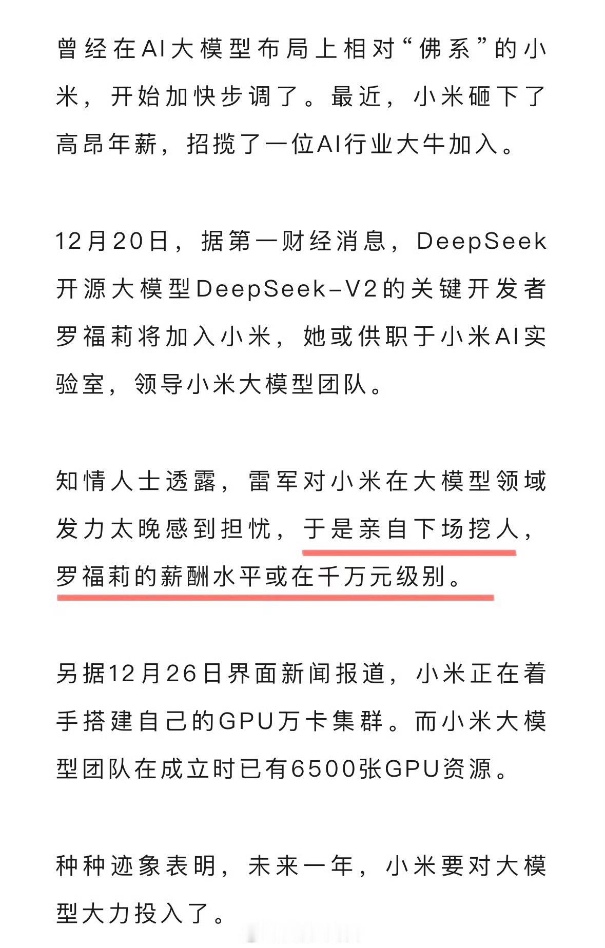 她身上“天才AI少女”“千万年薪”的标签,也很符合“营销天团”小米的调性