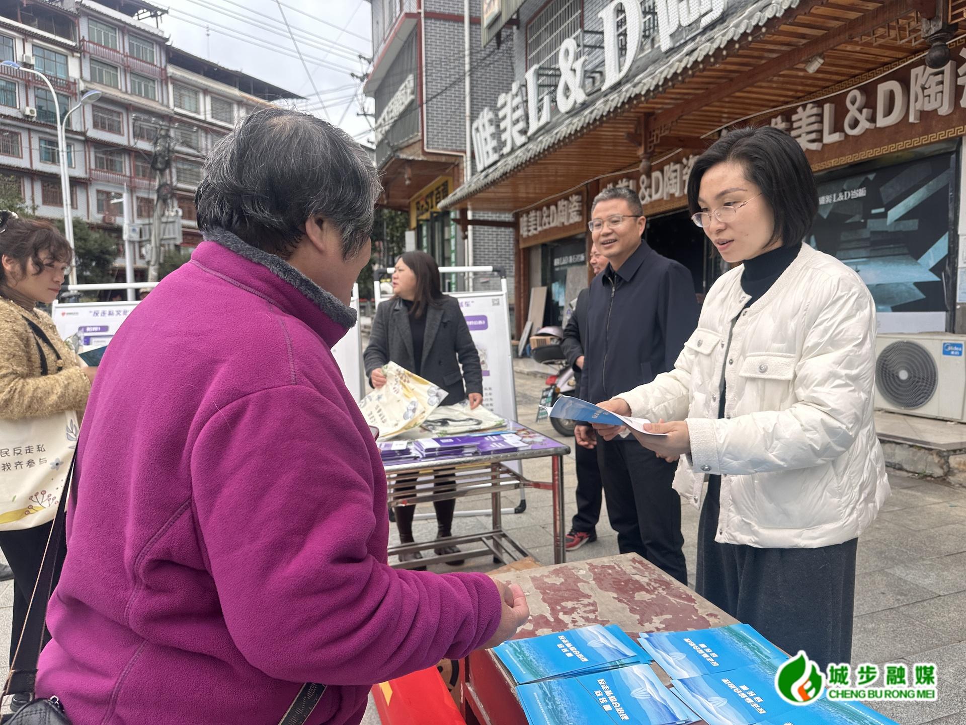 城步新闻网11月11日讯(见习记者肖彤丹)11月11日,城步打私办在八角亭社区开展反走私综合治理主题宣传活动,通过多形式、接地气的宣传方式,向群众普及反走私相关知识,切实增强群众法治观念和防范能力。县市场监督管理局、县发改局、县森林公安局、县林业局等部门参加。