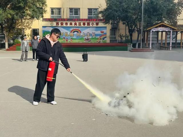 随后,总务处秦长青主任为全体师生讲解了灭火器的操作方法及要领。赵振宇老师为大家演示了如何快速灭火。