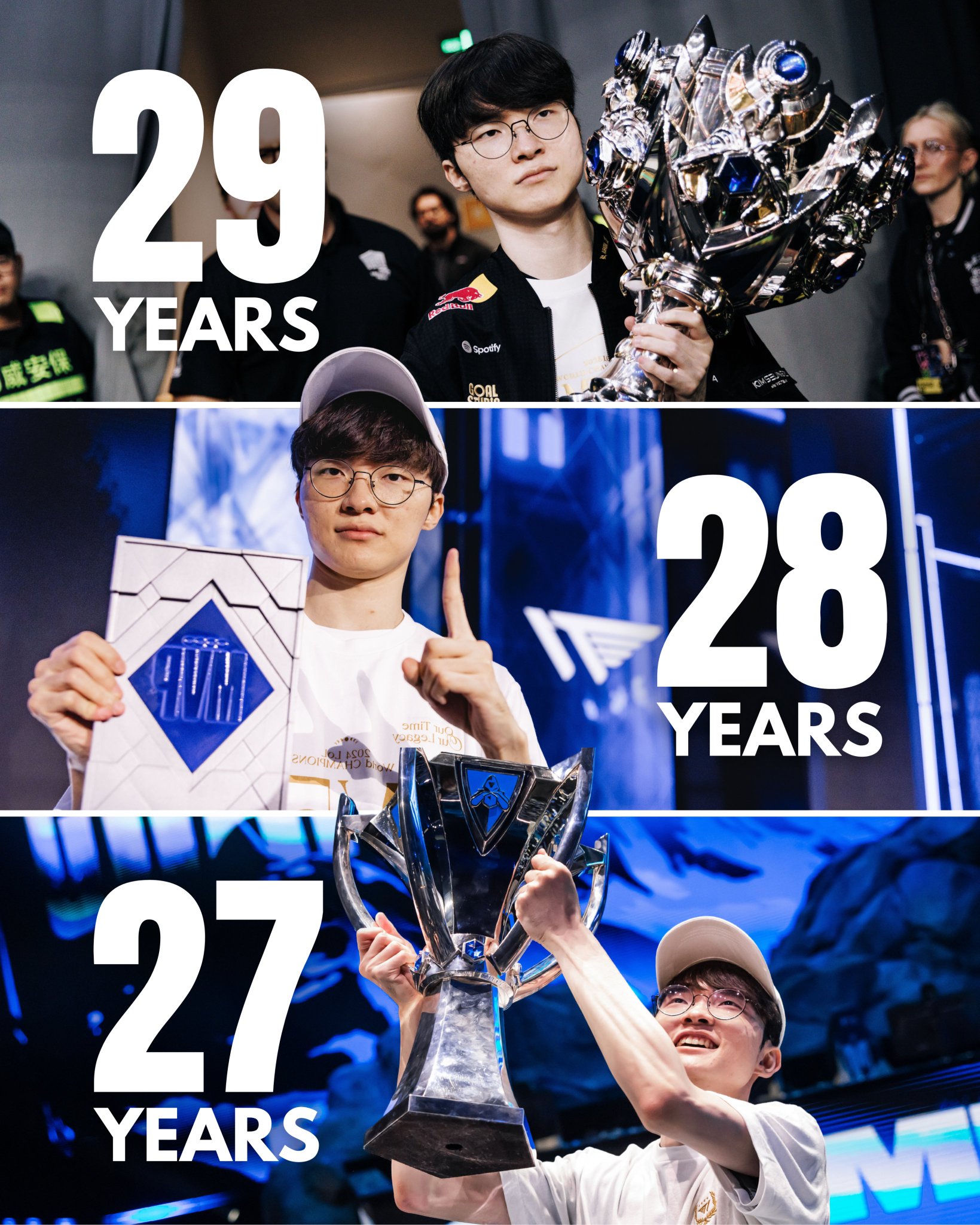 值得一提的是,如果不计2011全球总决赛,那么Faker将同时是最年轻的全球总决赛冠军与最年长的全球总决赛冠军。