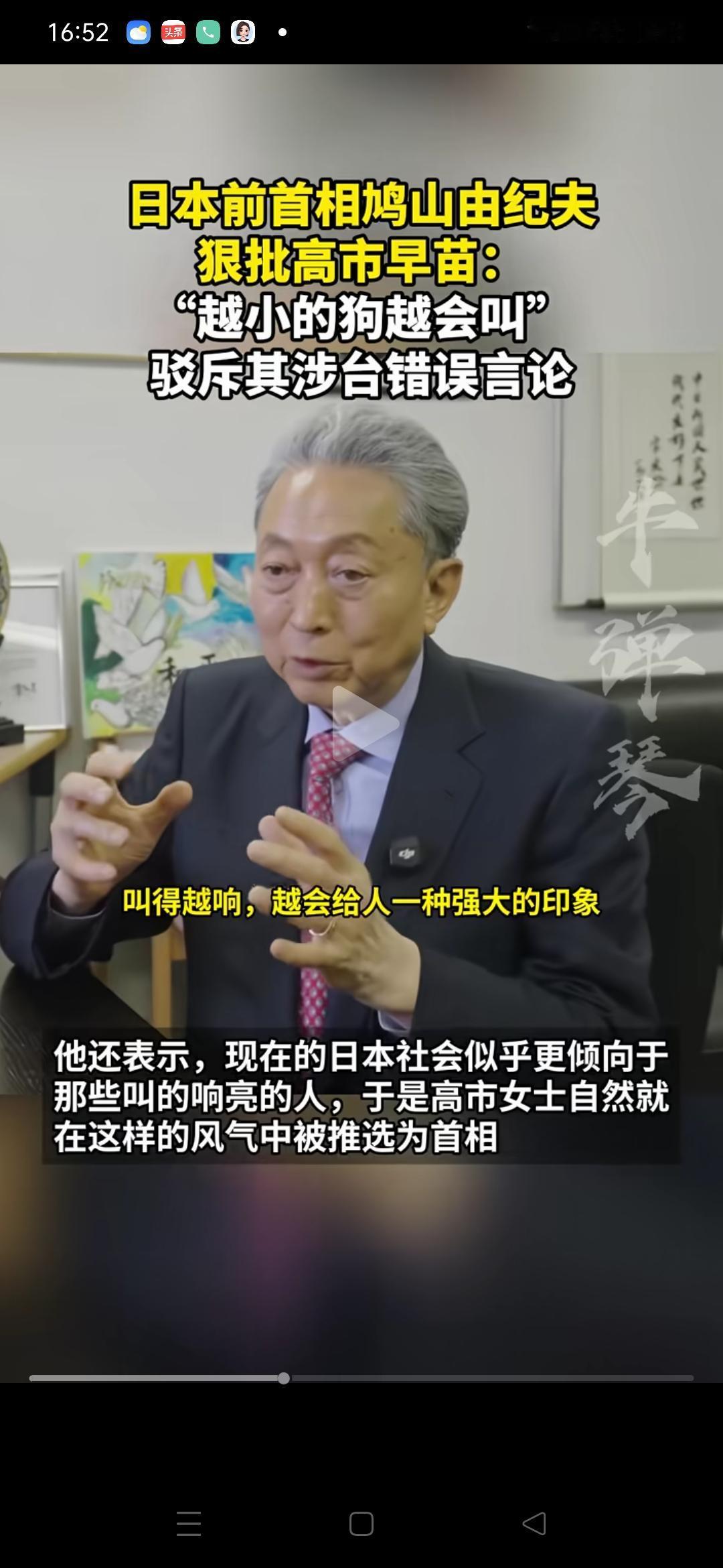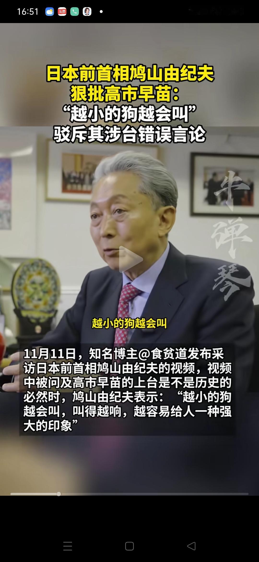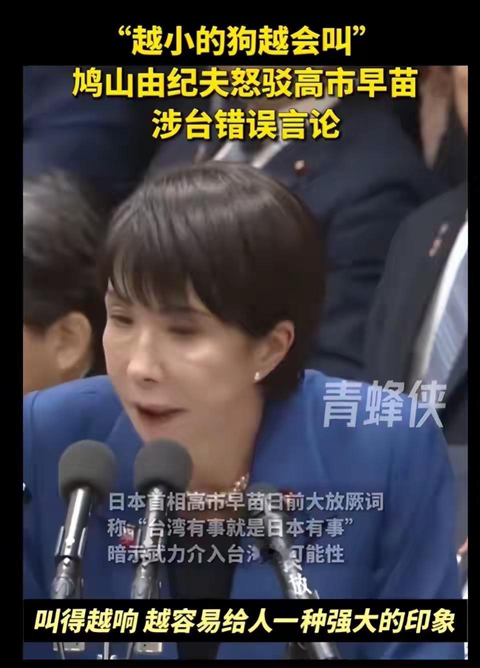 “越小的狗越会叫,叫得越响,越容易给人一种强大的印象”!日本前首相鸠山由纪夫驳斥日本首相高市早苗的涉台言论,批评其煽动危机、加深中日仇恨。 这种表述太有文采了,太贴切了,把高市早苗的歹毒的心拿出来给一脚踹碎了!在日本,像鸠山由纪夫这样的清醒的政治家已经不多了。他很清楚,中日仇恨再不和解,中日终有一战,日本必忘! 高士早苗 高市早苗内阁 鸠山由纪夫怒斥高市早苗 :少插手别国内政!
