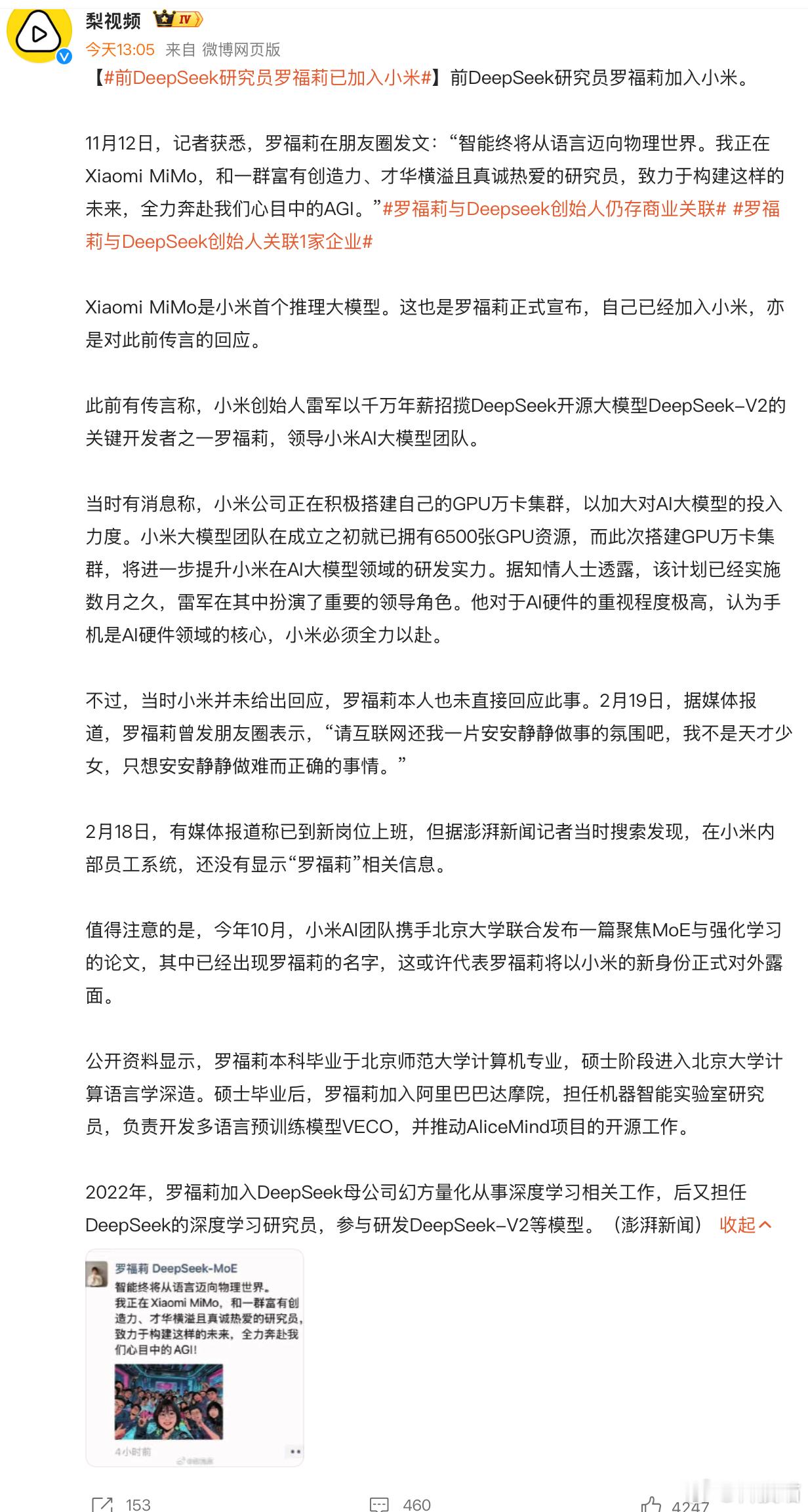 小米这是又挖到大神了,小米AI能力,接下来可以看看做的怎么样