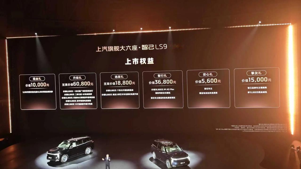 车盟快讯:今晚,上汽集团旗舰新能源SUV智己LS9正式开启上市,共推出两款车型,上市权益价区间为32.28万元-35.28万元,现在下订还可享5000元预付款抵15000元现金抵扣券,总价值60800元配置升级礼等五大购车权益,作为上汽集团新能源旗舰SUV,智己LS9搭载诸多行业黑科技,恒星超级增程,灵蜥数字底盘3.0,首发B&O音响等等,绝对是今年产品力拉满的一台旗舰9系SUV,大家对这个价格还满意吗?