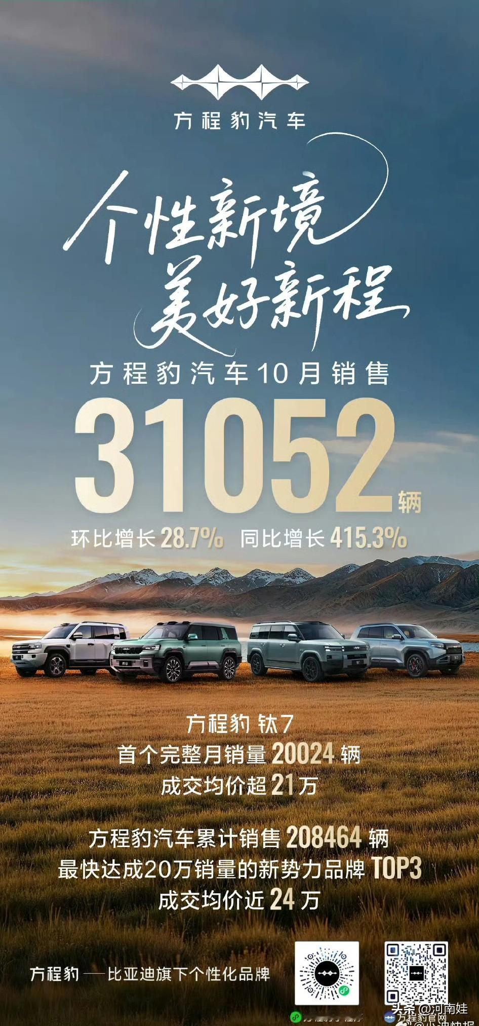 方程豹是比亚迪旗下的个性化品牌,车型有豹5,豹8,钛3,钛7。方程豹钛7销量太好了,上市首月热销2万辆,方程豹汽车的总销量也迈入3造辆大关。反正就去方程豹钛7的订单很多,很多车主还在着急的等车中。开方程豹钛7,既有面子,又有里子,车又大又好开,外形好看,内饰豪华。方程豹钛7,让一切大有可能,大有期待,未来可期。