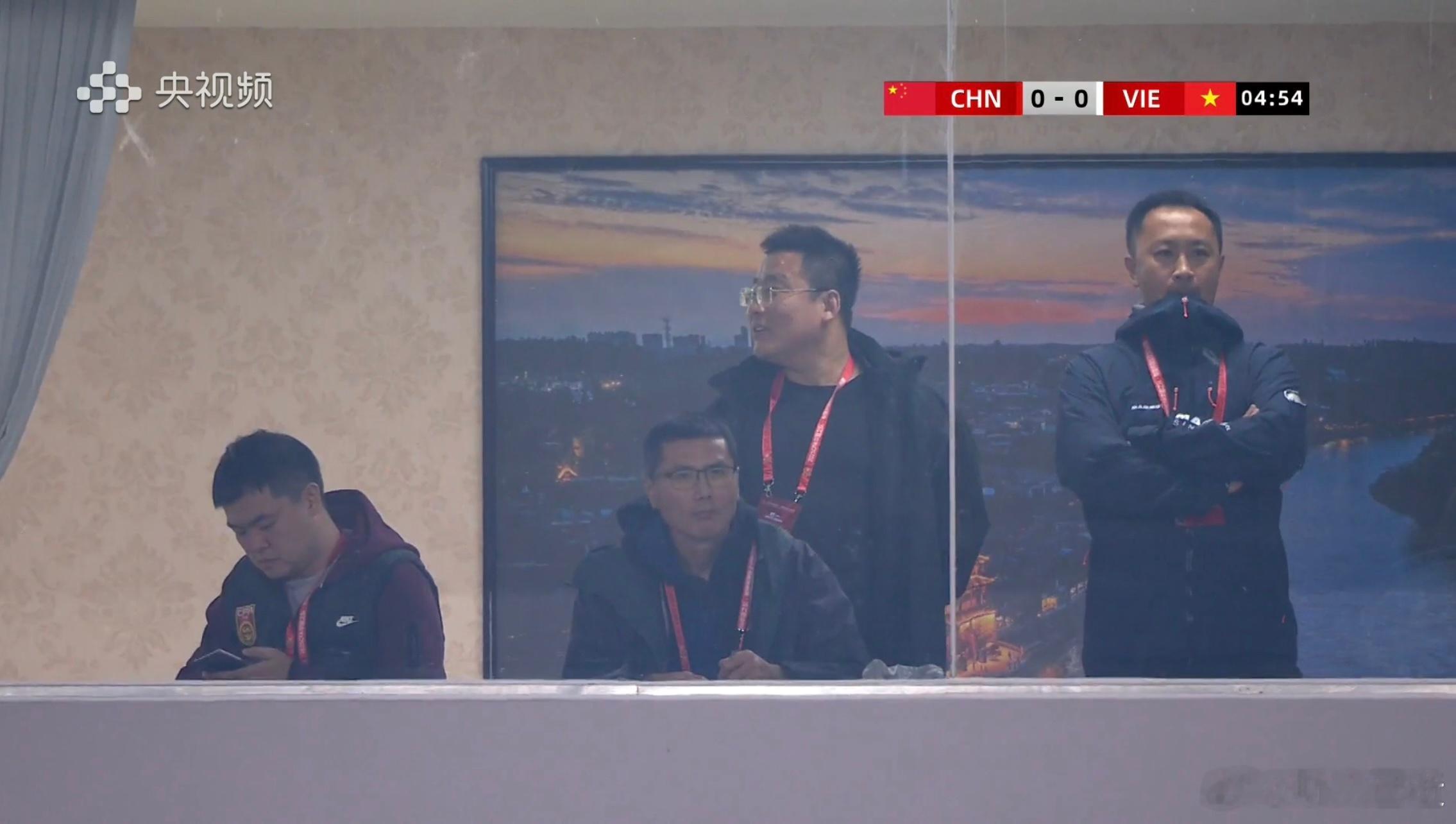 虽说官方站位是442,但实际很清晰是532,胡荷韬站在右翼卫位置。国足新帅邵佳一也来了,旁边站着张池明。