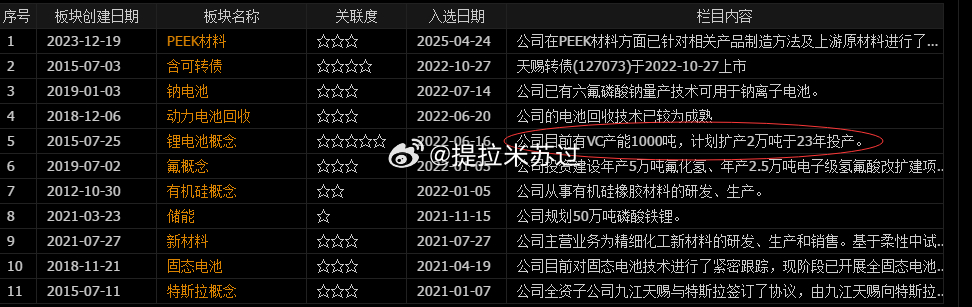 VC涨价,明天天赐能蹭一蹭。龙头以及涨翻天了。华盛锂电,现有1.8万吨,3万吨在建。海科新源,现有1.3万吨,数千吨在建。