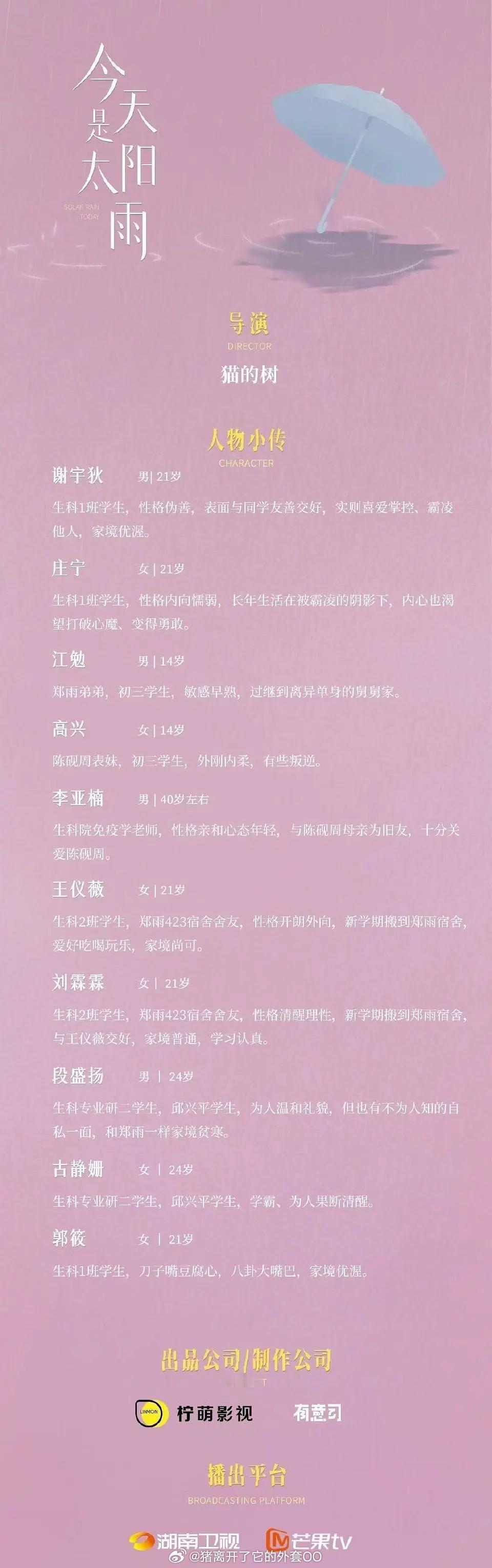 柠萌➕芒果tv现偶《今天是太阳雨》主演:杨超越、董思成即将开机!!