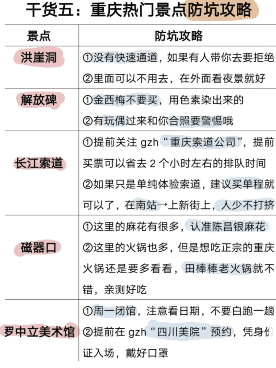 5⃣重庆热门景点防坑攻略