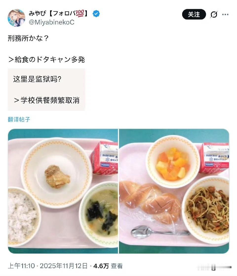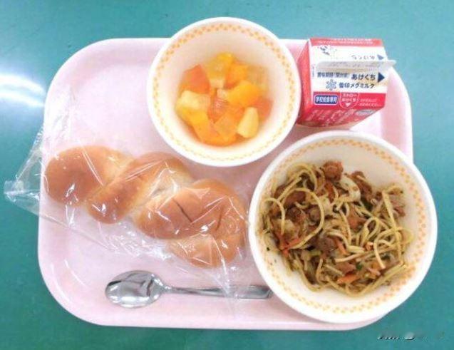 谁说日本人不想学校的孩子多吃点呢?它们也是会比较的。图8它们也老羡慕了。因为图7是周二(11月11日)日本名寄市的学校午餐。现在知道乱马的学校,下课为什么要去抢面包了吧?