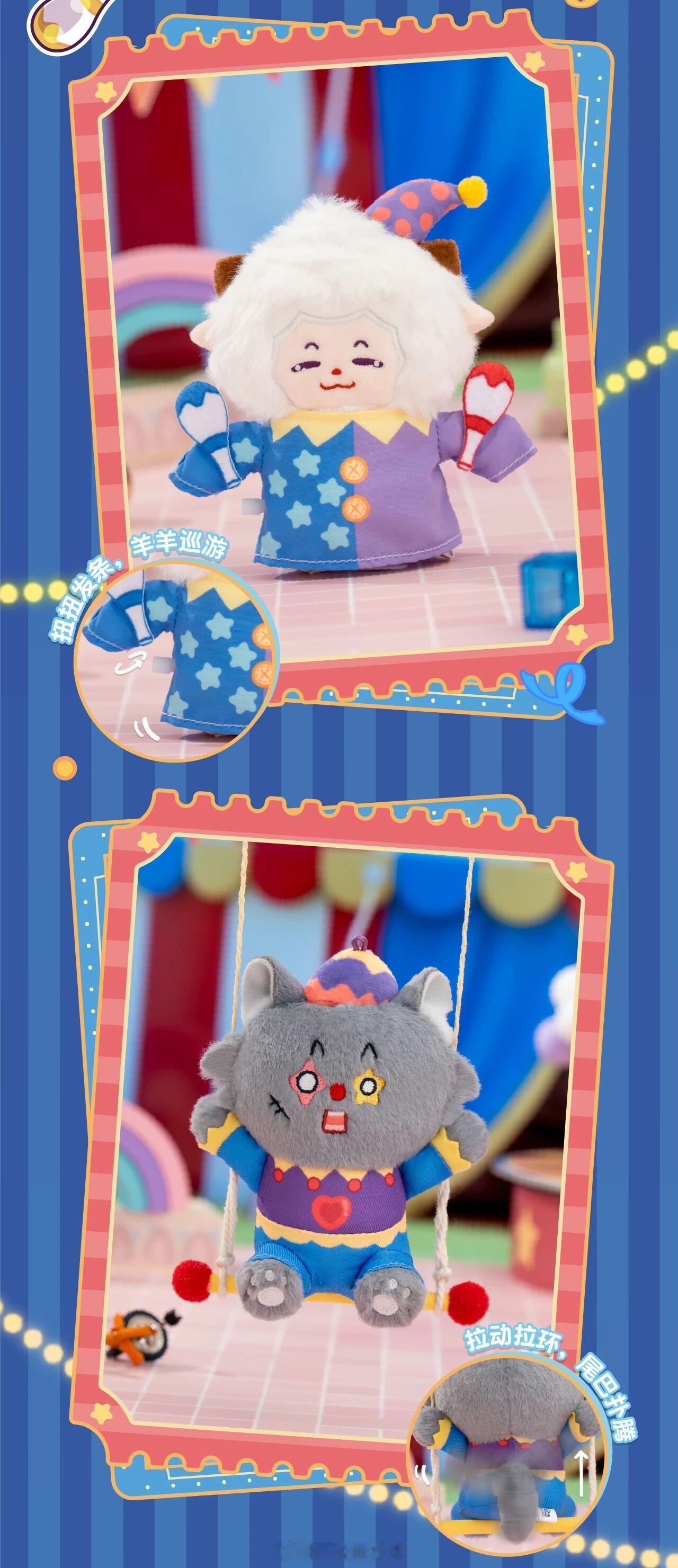 可爱的二次元周边。马戏团系列可动毛绒,共5款角色,每一款都超级可爱!