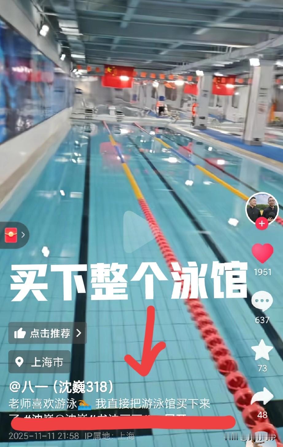 牛!真牛!买下泳馆供沈巍游泳,谁这么牛? 上海流浪大师傅沈巍直播圈出现牛人,此人网名“八一”(江苏盐城人,在沪经营租车公司,身价不菲)因偶遇网红沈巍,成为其粉丝。近两月,他甘做沈巍的“御用司机”,随叫随到,还免费提供上海住房供沈巍居住,得知沈巍爱游泳,道日他更是买下一个泳馆供沈使用,这份痴心力获沈巍认可与信任。 如今,八一负责沈巍的独家直播,知名度渐升,这难道就是他想要的回报么?或者他本来就是同情和崇拜沈巍,而甘愿无私付出?对于八一的倾情付出,不知道您怎么看?而沈巍是否可以安心理得的享受他人的馈赠呢? 上海沈巍 沈巍老婆