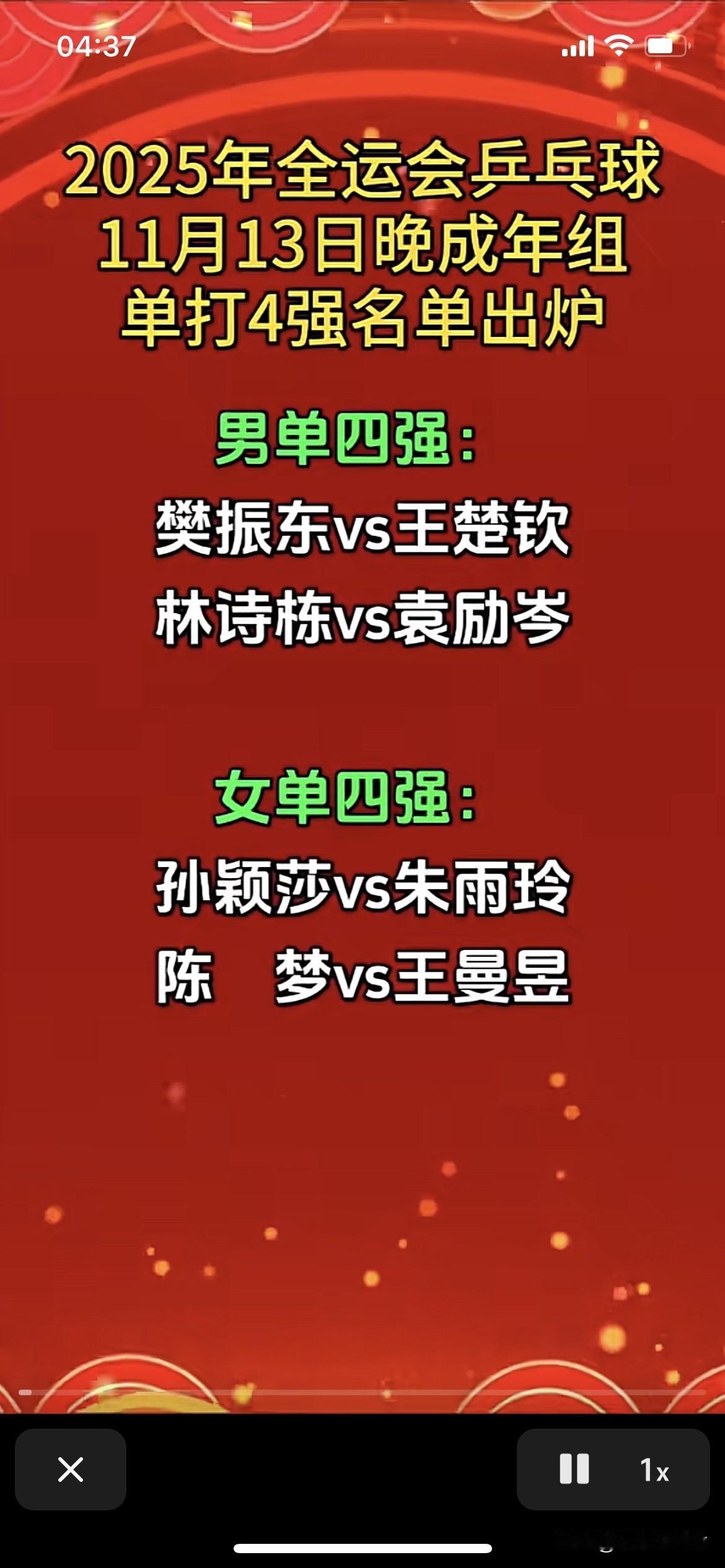 女单四强感觉是上两届的名单吧![哭笑不得]