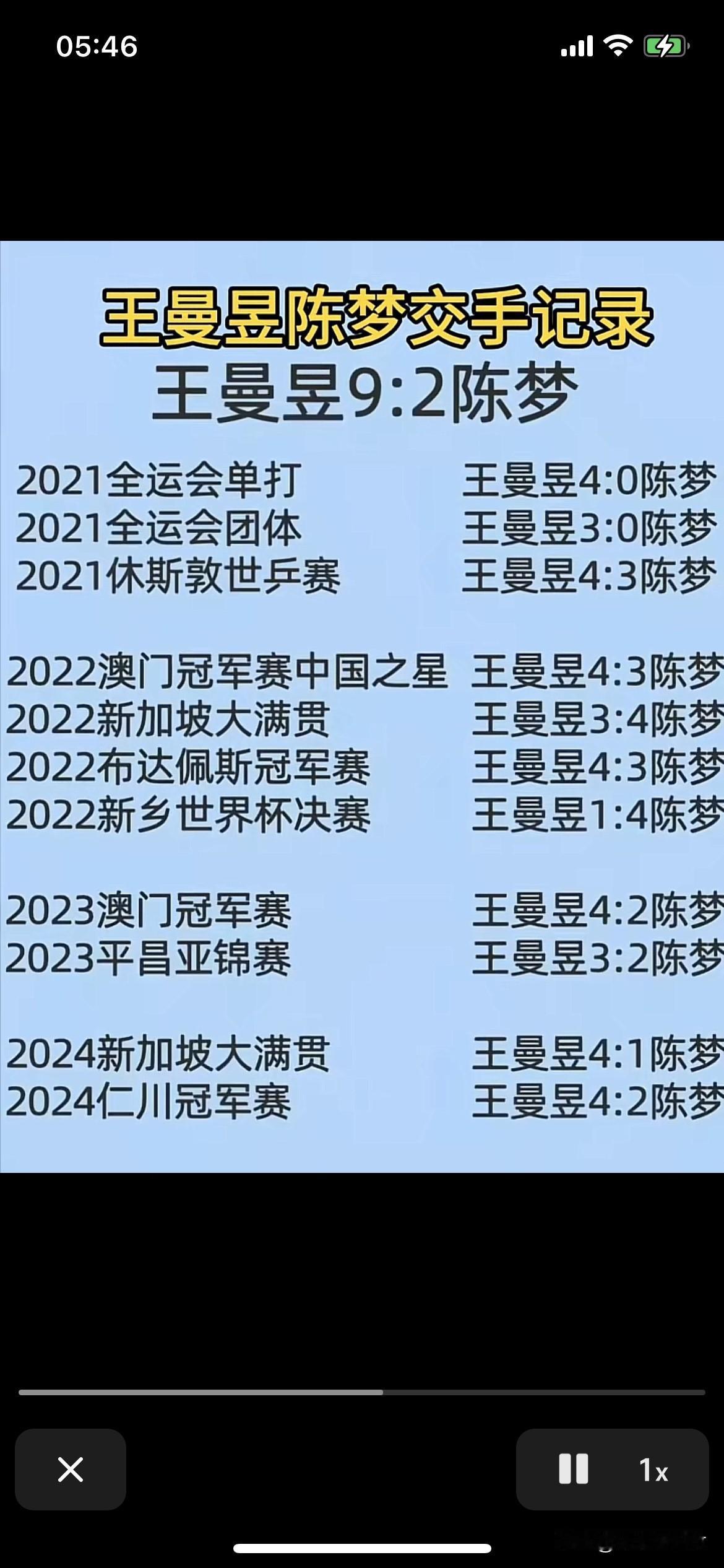 半决赛陈梦对阵王曼昱谁能晋级决赛全运会乒乓球女单四强 1、孙颖莎对阵朱雨玲 我觉得孙颖莎能够晋级决赛。朱雨玲打不过孙颖莎。 2、陈梦对阵王曼昱 陈梦和王曼昱都很强。陈梦是巴黎奥运会女单冠军。实力非常强。 王曼昱是我们黑龙江姑娘,我支持王曼昱。我们黑龙江的曼昱球打得好,人也特别好。低调又坚韧。 王曼昱和陈梦的交手记录 王曼昱和陈梦交手11次,王曼昱9胜2负。曼昱胜率大。 我希望王曼昱能够晋级决赛。 我希望王曼昱全运会女单夺冠 我们的曼昱是上一届全运会女单冠军🏆 王曼昱我在黑龙江给你加油! 曼昱加油加油! 曼昱轻装前进,全力以赴!