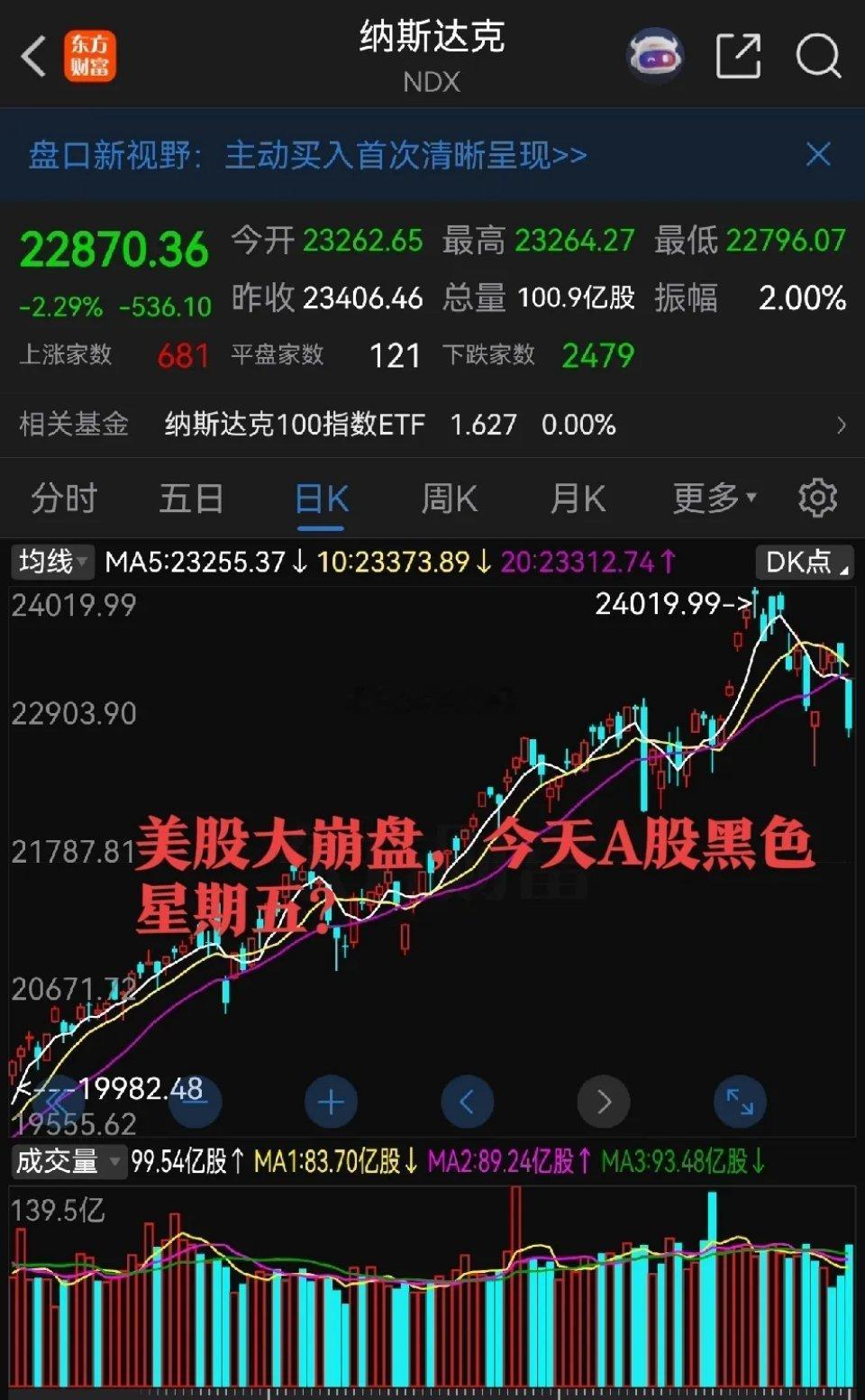 2大利空传来,今天A股黑色星期五?太狠了,美股昨夜直接崩了!纳斯达克直接大跌了2个多点,中概股也跌超1%,到底发生了什么?原来2大利空消息!第一件:美政府重新开门,算是利好兑现,接下来各种数据会公布,不确定性增加!第二件:美联储官员4-5位,鹰派言论,预示12月可能不降息,12月降息概率已经不到50%。那么今天A股怎么看?我的观点是跌,主要原因是咱们这段时间涨的逻辑和美股上涨逻辑基本相同,美联储12月不降息,对A股是实实在在的利空!而且技术面看本来就要回踩!现在看美股技术面也没用跌完!朋友们,你认为今天A股大跌吗?