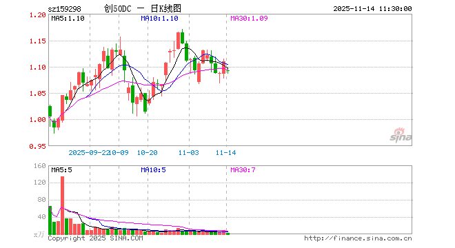 11月14日,截止午间收盘,创业板50ETF大成(159298)跌1.53%,报1.092元,成交额200.04万元。创业板50ETF大成(159298)重仓股方面,宁德时代截止午盘跌2.14%,东方财富跌1.23%,新易盛跌2.94%,中际旭创跌2.54%,胜宏科技跌2.91%,汇川技术跌0.90%,阳光电源涨0.19%,迈瑞医疗涨0.35%,天孚通信跌3.33%,同花顺跌0.96%。