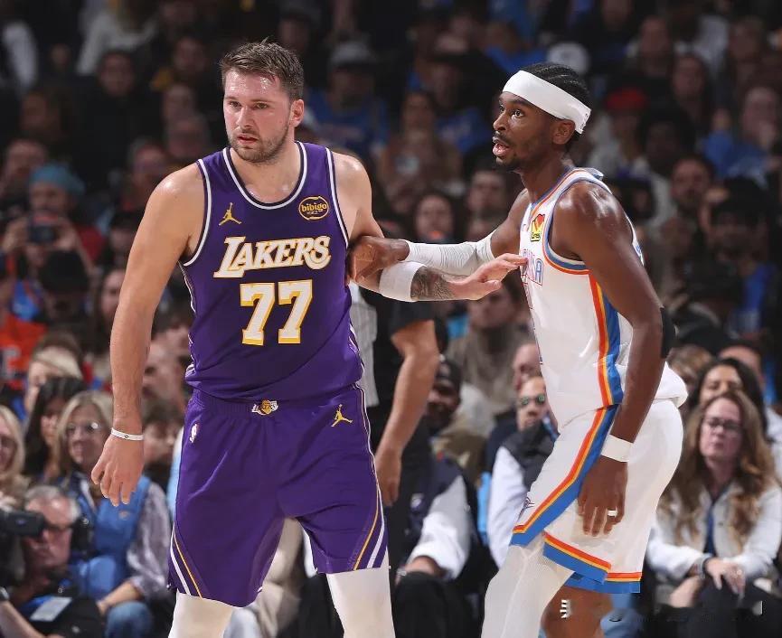 雷霆成为检验强队的试金石 也是检验对方当家球星的能力 雷霆分别把勇士,活人两大流量大队打回原形 也把球队当家球星打到怀疑人生 先是126-102大胜勇士,作为勇士的核心人物库里,只有13中4拿到11分1篮板还赔上5次犯规 全队最高分只有13分,这一场比赛把勇士内部都打出矛盾 随后又是以121-91狂胜湖人30分,只用了半场不到就把湖人打投降,东契奇本场只有20中7,拿到 19分7篮板7助攻还有4次失误,东子几乎场场都是30几40几的得分,这一场连20分都不到 原本以为勇士被揍的惨,没想到湖人更惨,被对方限制到100分都拿不到,雷霆还是联盟独一档的球队
