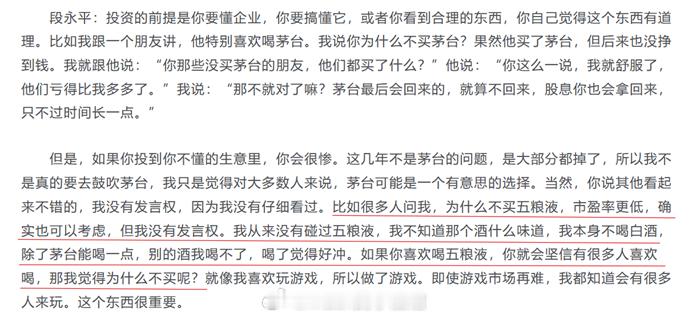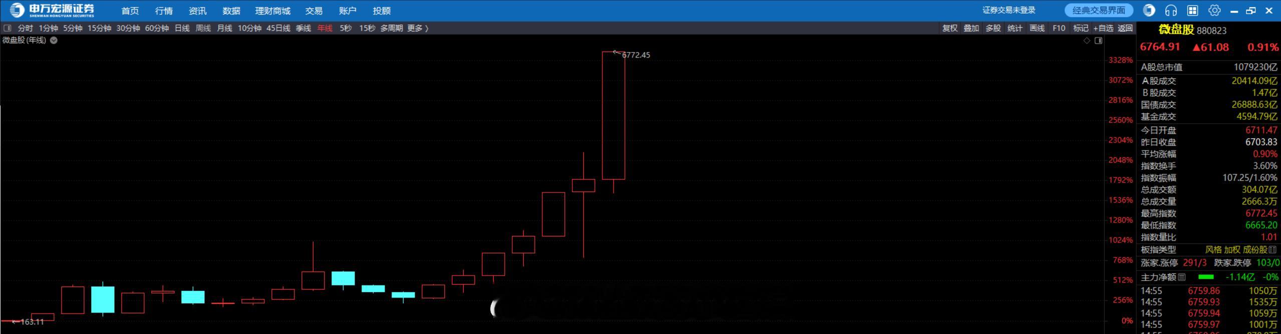 大盘再创新高,聊聊段永平谈茅台!周四A股市场迎来放量普涨的强势行情,沪指再创十年新高。沪指涨0.73%,报4029.21点;创业板指大涨2.55%,报2933.01点;深成指涨1.78%,报13476.52点。沪深两市成交额2.04万亿元,较上一交易日显著放量969亿元,量价齐升资金回流,市场交投活跃度回暖。个股层面呈现普涨格局,全市场近4000只个股上涨,104只个股涨停,市场赚钱效应较好。其中微盘股指数创出20年新高,牛市热点题材发散,小市值股被热炒。还有人否定这是牛市,可以让他看看微盘股指数。牛蹄已经踩脸上了。市场热点发散,不继续炒算力那几个公司对我们是非常有利的。我们强调的化工公司(主要是锂电解液)正在一个个爆发,在8月份看过星球的老师都知道,星球里面最近一段时间的专属组合也起飞了。希望热点继续发散,白酒,医疗,红利都能借着势头起飞。段永平最新采访的再次提到茅台, 段总对于茅台的看法可以总结成下面几点:1.依然坚持看好,认为茅台会回到高点,也就是超过3万亿市值。2.对于喜欢喝茅台的人,他会孜孜不倦得去喝,这是一个现有的事实。3.茅台作为国企,流程上很多双眼睛盯着,质量很严不会轻易改。茅台不改变飞天的口味,那茅台问题就不大。4.喝茅台的是人还能活很久,年轻人现在不喝茅台,未来未必不喝。5.茅台有国际化的潜力,但是茅台没有努力去干,外国人都不知道茅台,更别说喝了。至于2600块不卖茅台,段总给的答复比较开放。如果21年能看到英伟达是现在这个样子,肯定是把茅台卖出来无缝换成英伟达合适。但他说那是后视镜看法,实际上很难做到。对于他而言茅台仓位太大了,一旦卖出现金太多不知道买啥。大环境不好其他的公司也在掉,他认为还是拿着茅台安全。段总这次采访非常值得观看,某站就有全集。我已经看了三遍了,每次看都很有收获。并且这次访谈罕见地提到了五粮液。五粮液现在市盈率更低,但是段总没喝过五粮液,说自己没有发言权。但如果你能确定还是有很多人喜欢喝五粮液,那是可以考虑买的。还拿了游戏行业做比喻。知道某个东西有人喜欢很重要,这是在行业困难时候能坚持下去的信念。五粮最近涨幅落后白酒板块很多,和其他公司比较,性价比慢慢就出来了。最后转载笑话一则。算力小登:坏了,这下我成老登了。市场没有yyds。茅台不是。22年的新能源不是。25年的光模块也不是,现在大盘新高,光模块板块阴跌,追高的人得到了应有的结果。现在正火的储能也不是,但是储能能涨到多高不知道。风水轮流转,周期永不眠。投资能做的很少,只能在周期底部尝试去介入。在没人看好的时候,在公司价格底部买入去蹲着。蹲2-3年来一场风,赚1-2倍获利了结下一只。重复这个过程对于赚钱来说就够了。风险提示:短期涨跌不预示未来,如提及个股或基金不代表投资建议。投资需谨慎
