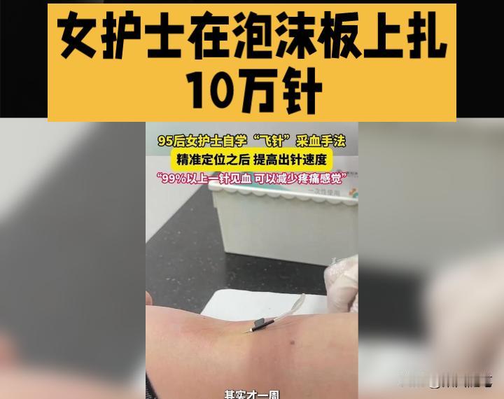 这种拼劲做什么都会最优秀,你别不信。“飞针”采血技艺,你一定没有听说过。近日,27岁的蒋女士是云南曲靖某三甲医院的2护士,凭借精湛的“飞针”采血技艺,成为了医疗界的热门网红。 据媒体介绍,蒋女士因为工作需要,苦练采血技术基本功,十分投入。为了练出这一绝活,她每天一有时间,就在泡沫板上练习扎针。并给自己设定了目标,坚持每天练习扎针6000多次。目前已累计扎出了10万个针孔。 为了减轻患者的疼痛,她还经常和同事一起交流经验,并坚持进行试验和摸索,终于形成了科学完整的一套“飞针”采血技艺方法体系。 蒋女士的故事不仅体现了医者仁心大爱无疆的人文关怀,也为我们展示了一个基本的道理,就是只要你勇于钻研,不懈努力,顽强拼搏,每个人都会有成功的光彩瞬间。飞针测试 灭菌采血针