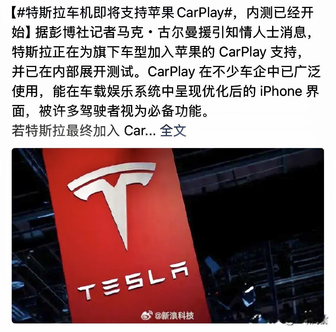 特斯拉车主看过来, 马上就可以使用CarPlay 支持了!彭博社记者马克·古尔曼爆料,特斯拉正在内部测试苹果CarPlay功能,未来几个月可能就通过OTA推送,曾经坚决说“不”的马斯克,终究还是向市场需求妥协了! 要知道,这可是车主们喊了整整10年的诉求!以前特斯拉一直死守自研车机,马斯克不仅多次拒绝CarPlay,还吐槽过苹果的App Store政策,甚至因为苹果挖特斯拉工程师闹过不快。但架不住车主们的吐槽声越来越大——特斯拉车机导航是出了名的难用,同样的目的地,自家规划路线比高德、百度慢10分钟都是常态,该走高速偏选地面,活生生耽误时间。 而且没有CarPlay,iPhone用户体验直接打折扣:想听专属歌单得重新收藏,手机上的导航不能无缝投到车机,就算用第三方CarPlay盒子,还得连热点、忍受发热延迟,用着特别闹心。反观其他车企,不管是合资还是国产,早就把CarPlay当成标配,毕竟它能直接同步手机界面,消息、音乐、导航一键切换,对苹果用户来说简直是“刚需功能”。