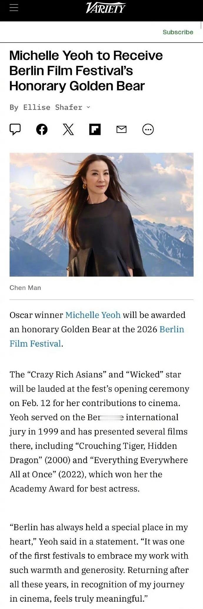 恭喜杨紫琼荣获柏林电影节终身成就金熊奖,而她此前已凭借《瞬息全宇宙》成为首个亚裔