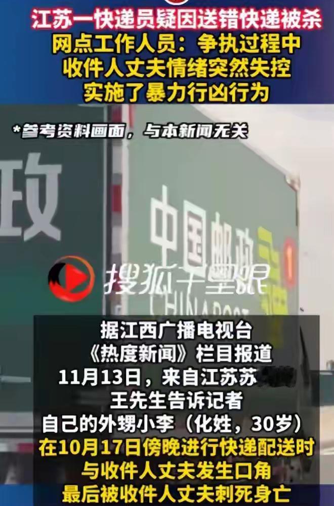 30岁快递小哥投送快递时把客户的快递送错了,就是多了几百米的小区,却因此丢了性命,真的是太可惜了,客户的戾气太重了。 快递小哥也没想到,一次错误的快递会带来杀身之祸,他努力的工作,家里就他一个孩子,父母也指望着他养老,可是老天就没给他多一次机会。 在10月17号傍晚小李接到了客户投诉电话,客户要求他把快递找到,并且送到客户手里,小李没有办法就去把快递拿了,在原地等着客户过来,准备跟客户道歉 可是来拿快递的是女客户的老公,女子老公脾气不好,冲着小李就吼叫起来,小李解释了后他也不听,瞬间两个人争吵了起来,女子老公就从怀里拿出了刀子刺了小李,小李瞬间倒下,流血过多人就没了。