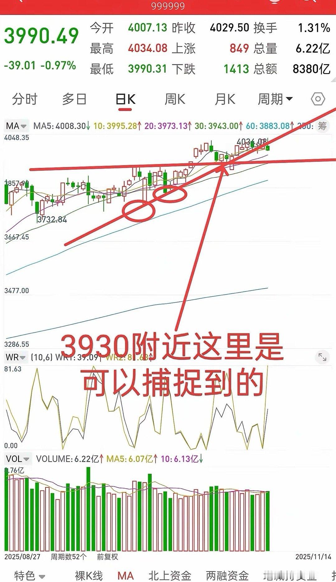 今晚美股盘前大跌,富时A50股指跳水,下周A股走势会如何?其实从技术形态上,很清晰,通过3732-3774这两个低点连线,是可以捕捉到10.13号低点3800附近的,这就是我当时10.12号周末提示,如果下周一跌到3800附近是第一上车点。然后从3800-3835两个低点连线,是可以捕捉到11.3号低点3930附近的,再加上10.9号平台支撑,这就是我在11.3号盘前,早上六点多提示,珍惜这两天底部,可能3935附近,也可能击穿下20日均线,到3920附近, 随后启动。那下周呢,通过3800-3835,或者3835-3922连线,可以捕捉到3970附近,正好是二十日均线附近,可能正好到这里,也可能破一下,然后低开高走,站上二十日均线之上,继续开启新一波反弹。因此,下周如果你是做短线,我说的是短线哈,只需要关注20日均线,收盘得与失即可,如果收盘跌破二十日均线,那就得出来观望下,等后面站上二十日均线再进场,反之,只要收盘收在二十日均线之上,那就没问题,持股待涨即可。所以,下周二十日均线,大概率就是多空争夺战!