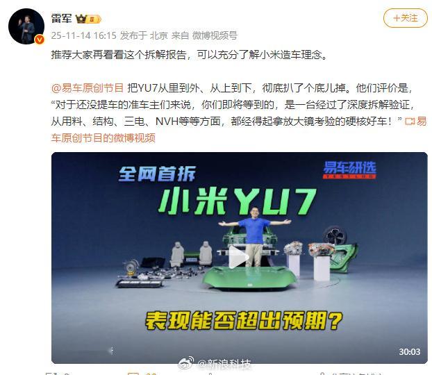雷军称看拆解可了解小米造车理念。从这句话就能看出,小米造车从一开始就瞄准了高端市场,而且有足够的底气。小米很清楚自己擅长什么,把智能座舱做得像手机一样顺手,把生态互联体验做得比对手更丝滑。这些都是小米的传统优势。所以,小米造车不只是在造一辆车,更像在打造一个“人车家”生态的新入口。但这条路能走多远,就要看它的产品力能否适应汽车行业了。