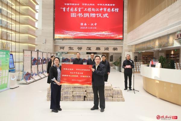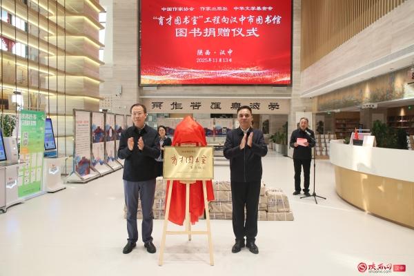 仪式上,作家出版社、中华文学基金会向汉中市图书馆进行了图书捐赠,并授予“育才图书室”牌匾。