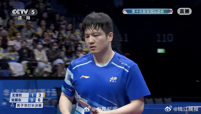 【 ! 加油!】 第十五届全运会 男子单打半决赛,目前大比分 2:2 。