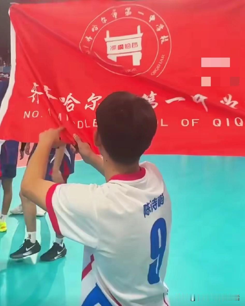 全运会排球男子U18四分之一赛黑龙江出战的竟然是齐齐哈尔市第一中学的几个十六七岁大男孩。 这一群青春洋溢,活力四射的东北大男孩在全运会对阵河南的比赛中逆风翻盘,以3:2胜出,顺利来到四强。赛后几个孩子激动的拿出黑龙江省的队旗和自己所在学校的校旗,自豪的在会场展开。这是他们第一次在全运会打进四强。有机会替自己的省队夺得一块牌牌了。看那个穿着白色球衣的自由人,用手指着自己母校的名字,那份激动和自豪绝对的干净和纯真。