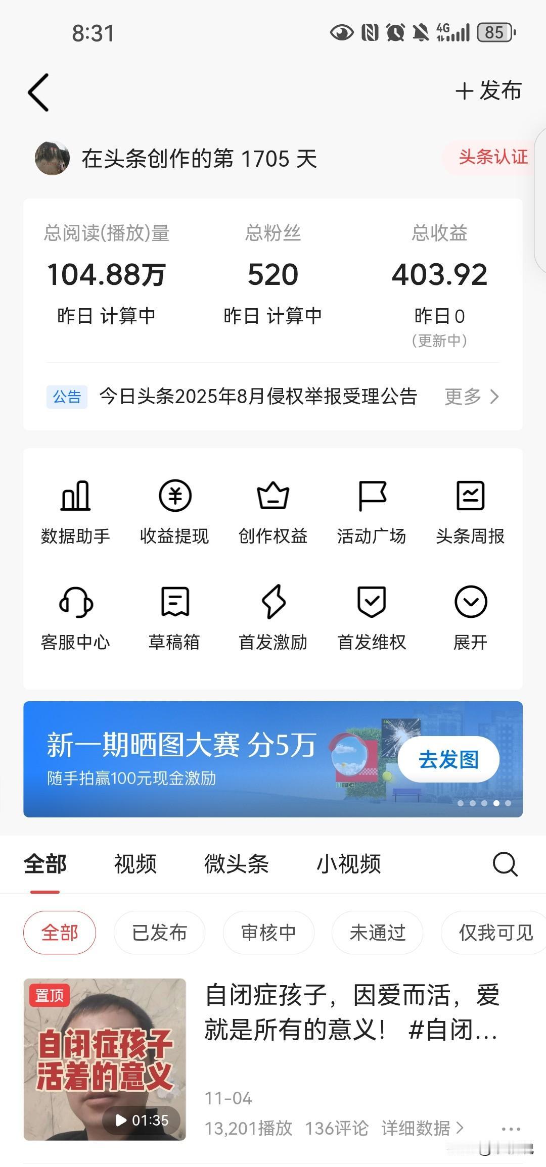 里程碑记录,头条是我的搬砖游戏。 一百万阅读,四百块收入,千字阅读平均四毛钱 头条创作,在我这里,就是一个打怪升级,收集勋章的过程。 每一个展示,每一次阅读,每一个点赞,每一条评论,都是我的经验数据。 每次提现,让我体验到了升级的收获,让我可以更有坚持下去的动力。 有很多可以搬砖的游戏,在头条写文字,就是我的搬砖游戏。