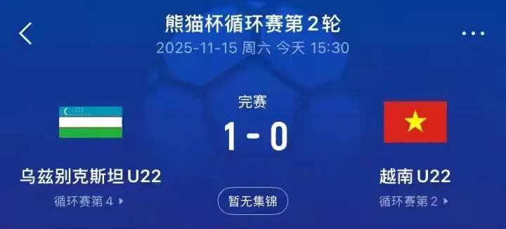 “熊猫杯”乌兹别克斯坦U22队1比0越南U22,目前韩国、乌兹别克斯坦和越南都积3分,就只有中国0分了,今晚中国队想赢韩国有点难,如果输了,中国队熊猫杯有可能3连败,成为最差的一届熊猫杯。 今天双方赛场表现上看,乌兹别克斯坦开场4分钟就靠哈米多夫破门取得领先,后续还多次制造威胁射门,越南虽中场控制更稳,也有几次有威胁的射门,但要么被对方门将化解,要么角度欠佳,没能扳平比分,而乌兹别克斯坦靠稳健防守反击守住了胜果。