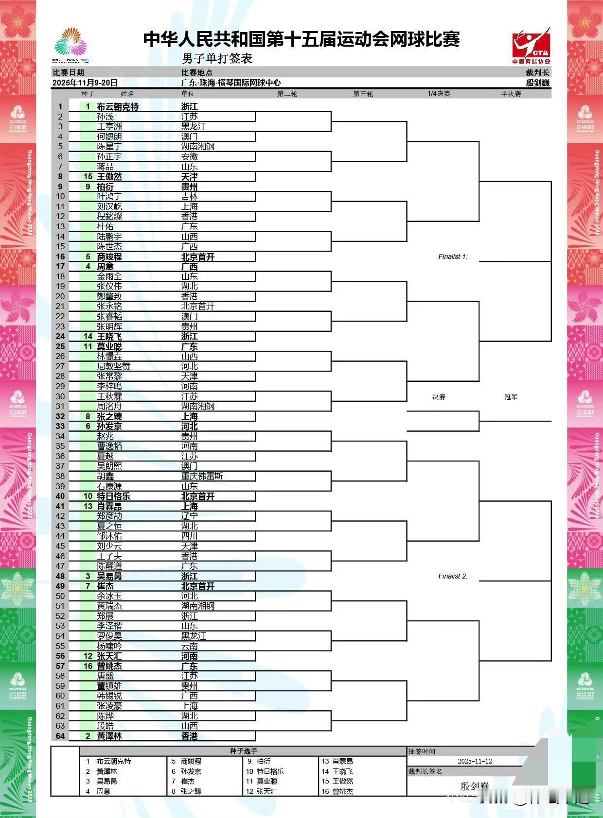 男女单打1/16决赛最新战报🔥🔥 男单⬇️⬇️ 头号种子浙江选手布云朝克特以6-1、6-2的比分,横扫黑龙江的王亨洲; 3号种子浙江的吴易昺以6-0、6-1的绝对优势,送蛋横扫天津的刘少云; 15号种子天津的王傲然以6-2、7-6(4)击败了安徽的孙正宇; 13号种子广西的肖霖昂以6-0、6-0的双蛋战绩,击败湖北的夏之恒; 6号种子北京的孙发京以6-0、6-1横扫江苏的夏越; 7号种子北京的崔杰以6-2、6-4战胜浙江的郑展; 10号种子特日格乐以6-0、6-1战胜重庆的胡鑫; 12号种子河南的张天汇以6-1、6-2战胜黑龙江的罗俊昊! 女单⬇️⬇️ 2号种子袁悦以6-0、6-0的比分横扫河南的蒋子君; 13号种子江苏的姚欣辛以6-0、6-3战胜安徽的陈梦钇; 16号种子天津的刘方舟以6-3、6-1轻取浙江的肖正花。