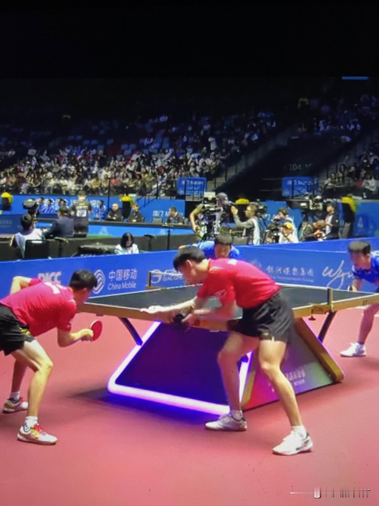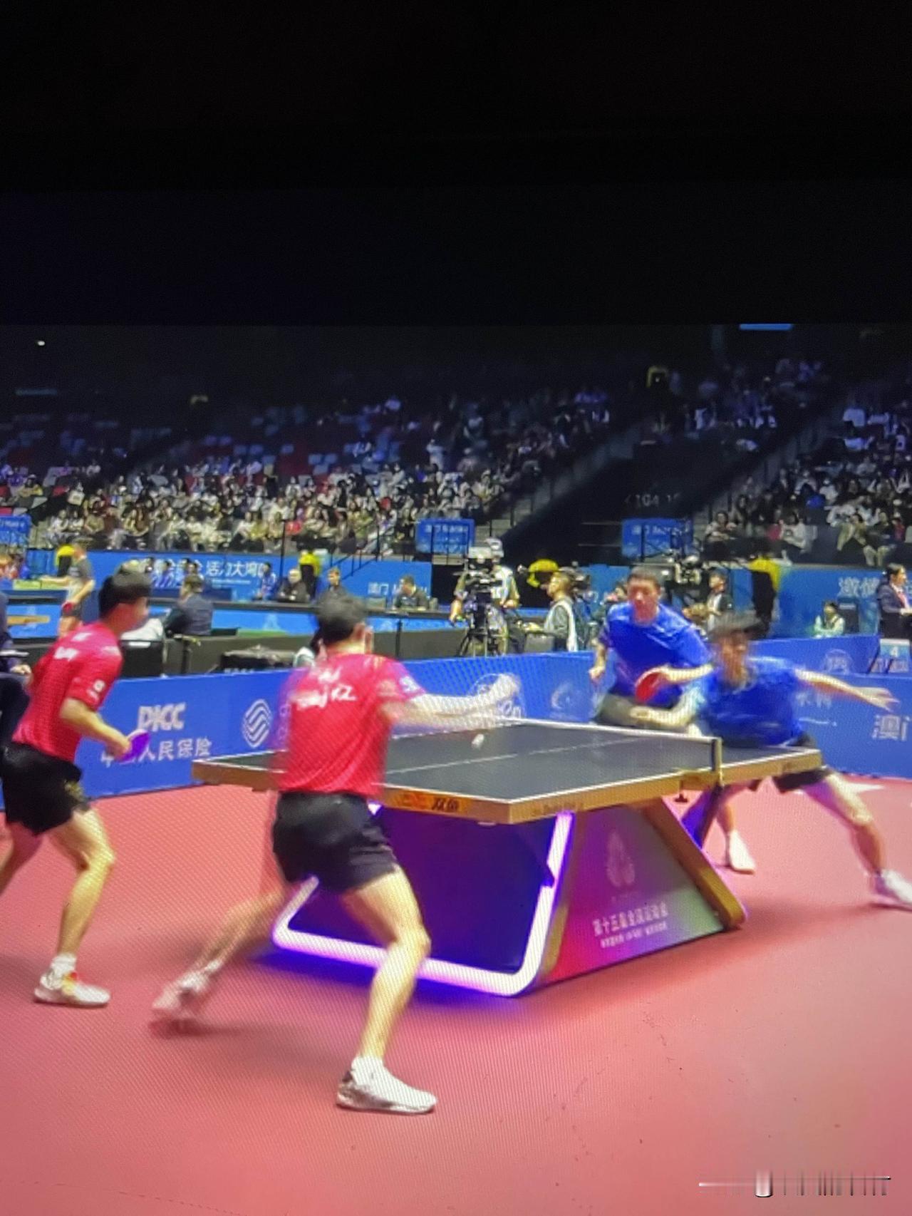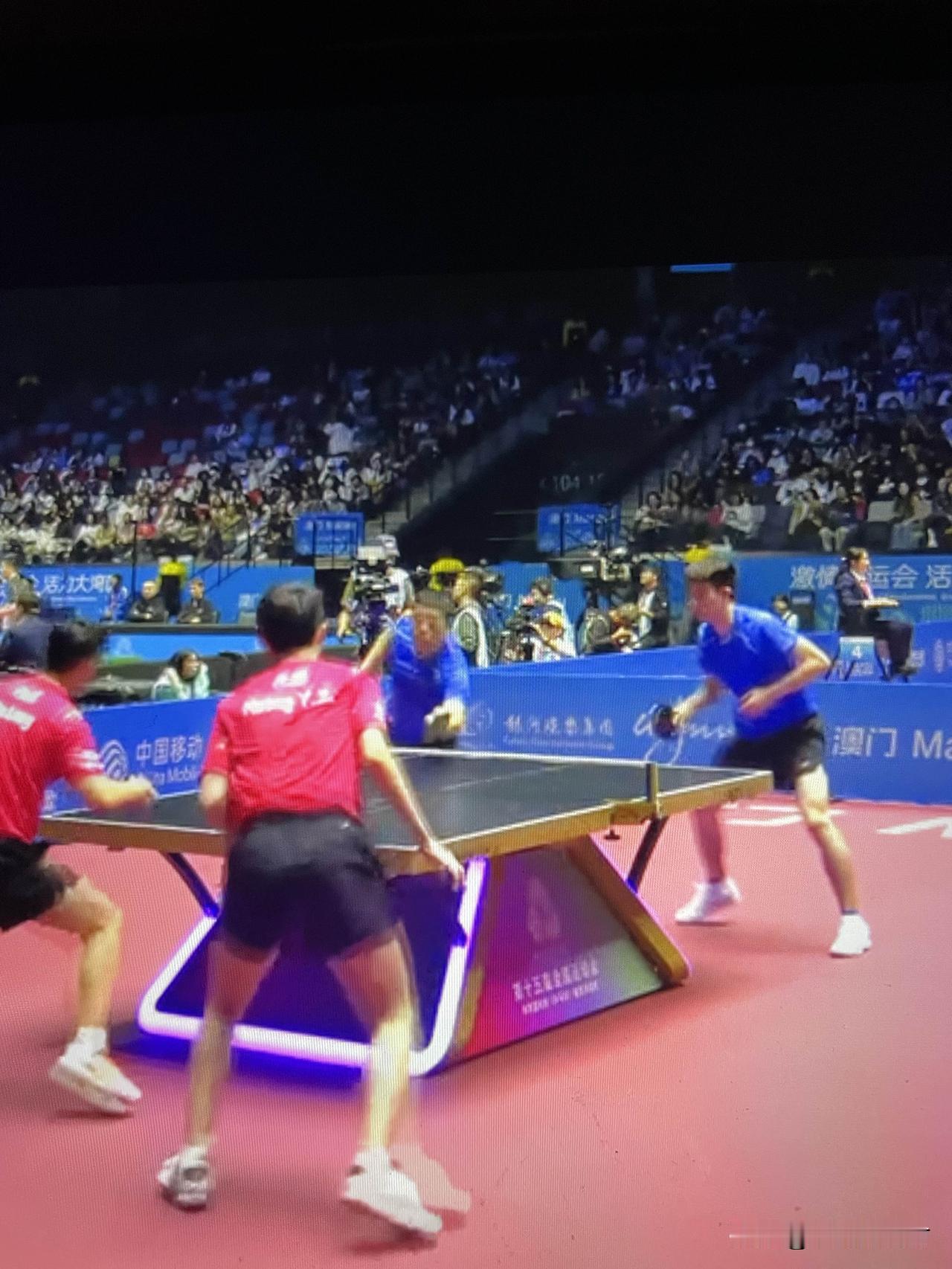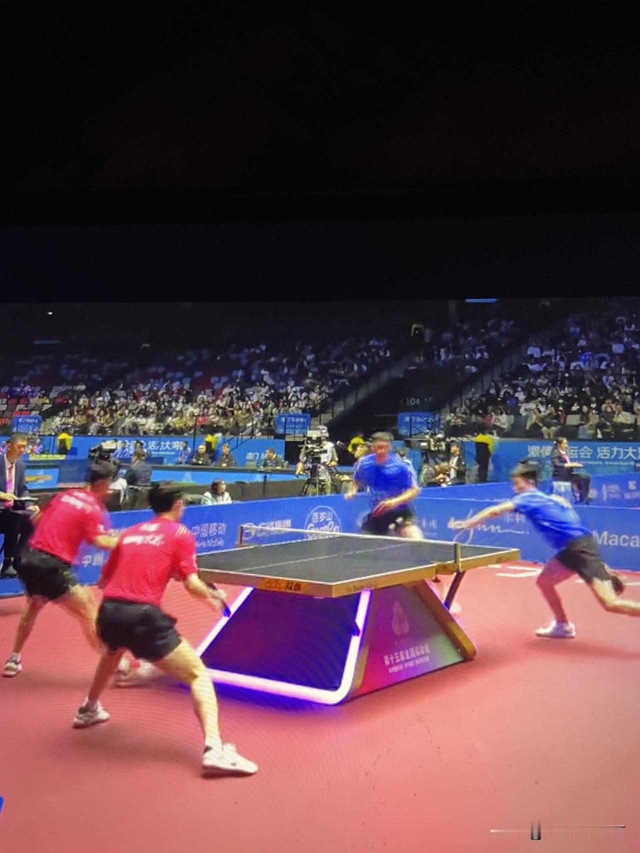 许昕周凯3:2战胜马龙黄友政 全运会乒乓球男团 上海队对阵北京队 许昕/周凯对阵黄友政/马龙 第一局马龙黄友政11:5战胜许昕周凯 第二局许昕周凯11:6战胜马龙黄友政 第三局马龙黄友政11:7战胜许昕周凯 第四局开局5:3,许昕周凯领先。双方得分8:6,许昕得分9:6,马龙得分9:7,周凯发球,许昕得分10:7,周凯反手得分11:7。许昕周凯赢下第四局。 第五局,开局3:1,许昕得分4:1,马龙黄友政叫暂停。暂停回来,双方得分7:4,黄友政反手球出台8:4,黄友政发球,马龙得分8:5,黄友政发球,许昕得分9:5,许昕正手进攻得分10:5,周凯得分11:5。许昕周凯赢下第五局。 许昕周凯3:2战胜马龙黄友政为上海队赢下一分。
