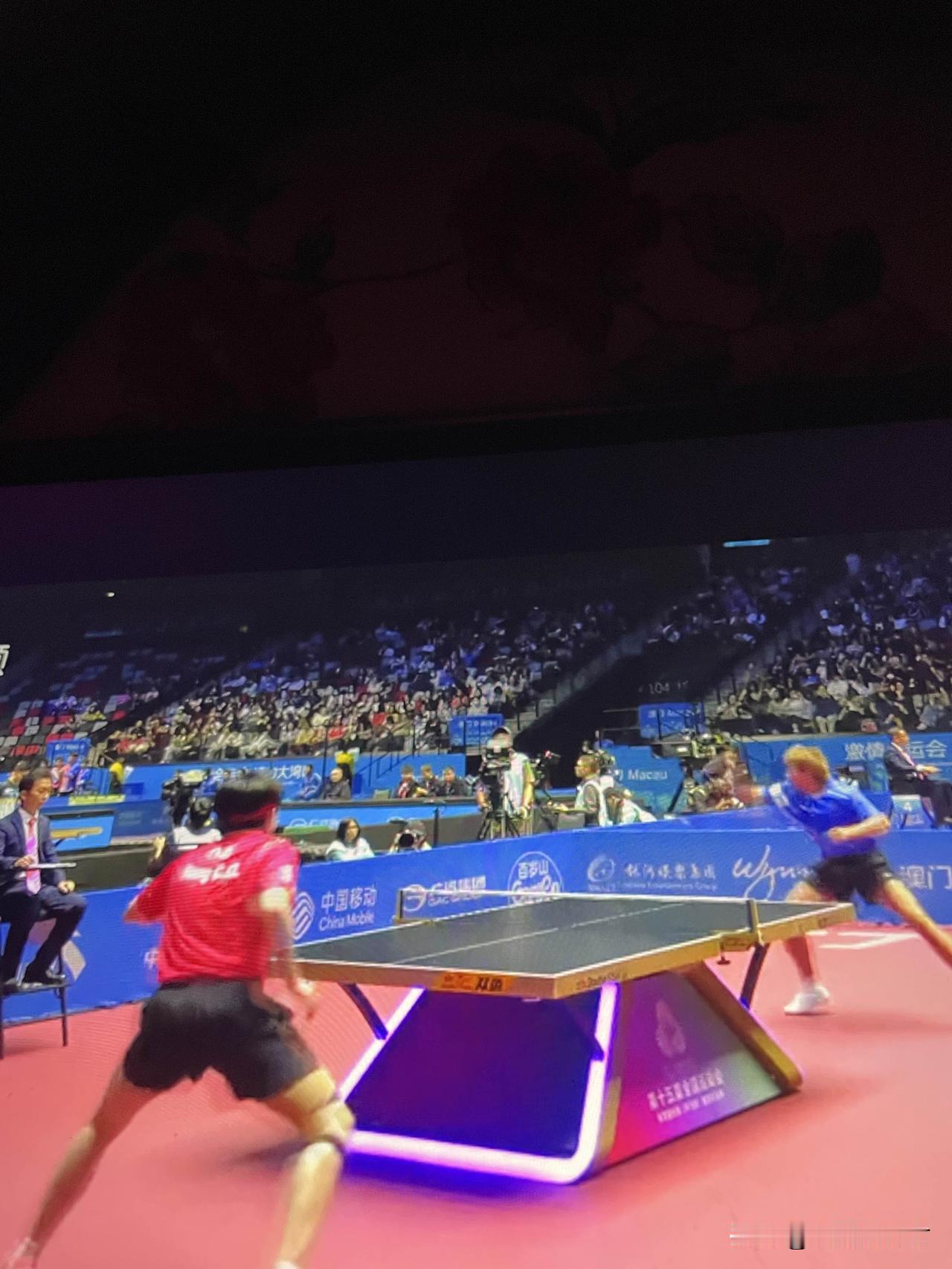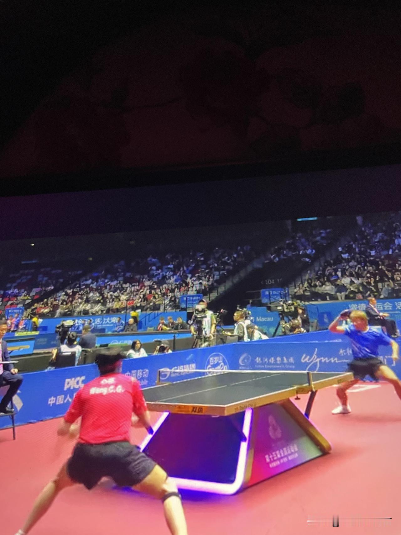 王楚钦3:0赵子豪 全运会乒乓球男团 北京队对阵上海队 第二场男单 王楚钦对阵赵子豪 第一局开局3:2,大头得分3:3,赵子豪反手接发球得分4:3,大头得分4:4,赵子豪正手进攻得分5:4,大头得分5:5,双方得分6:6,大头接发球得分6:7,大头得分6:8,大头正手进攻得分6:9,大头得分10:6,王楚钦局点。赵子豪得分10:7,赵子豪得分10:8,赵子豪正手进攻球出台11:8,王楚钦赢下第一局。 第二局,开局8:5,大头发球,赵子豪得分8:6,大头摆短得分9:6,大头得分10:6,大头球下网10:7,大头反手得分11:7。王楚钦赢下第二局。 第三局开局2:3,大头正手进攻球出台3:3,赵子豪滚网球得分4:3,大头得分4:4,赵子豪多拍正手进攻得分5:4,赵子豪得分6:4,赵子豪得分7:4,大头得分7:5,大头正手进攻得分7:6,赵子豪叫暂停。暂停回来,双方得分9:9,大头正手进攻球出台10:9,赵子豪局点,大头得分10:10,赵子豪发球抢攻得分11:10,大头得分11:11。大头摆短得分12:11,大头局点。多拍相持王楚钦得分13:11。王楚钦赢下第三局。 王楚钦3:0赵子豪为北京队赢下一分。 上海队与北京队大比分1:1平。