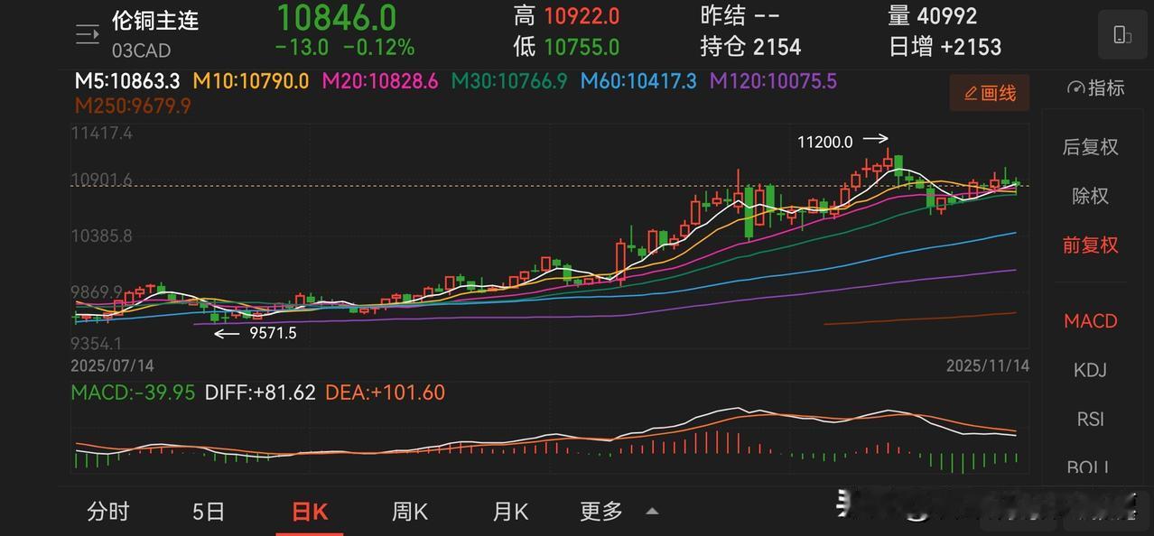 最近刷到了卓宝科技董事长邹先华的视频切片,听他讲地产有关的人和企业的故事,地产企业最终的结局基本上归于一途。 万达王健林、恒大许家印、万科王石、红星美凯龙车建新,这里面可能王石是相对抽离出来的,虽然经历了野蛮人敲门的事件,总体上还是好的。在整个圈里,可能 SOHO 潘石屹夫妇是真正的赢家,带走了胜利的果实。 前几天看到说有两家地产公司现在活的还可以的,无一例外都是创始人进去了,关了几年之后出来,因为不能扩张,主要是在守成,资产负债率相对健康,反而活的不错,真是一个巨大的讽刺。 年龄越大,越是佩服张瑞敏老爷子之前说过的话,只有时代的企业,没有企业的时代,经历的事情越多,越发现还真的是如此。 回过头来说黄金和铜,看起来摇摇晃晃,其实是高位横盘而已,没什么好在意的。 期货维持在高位,对相关的有色企业是好事。