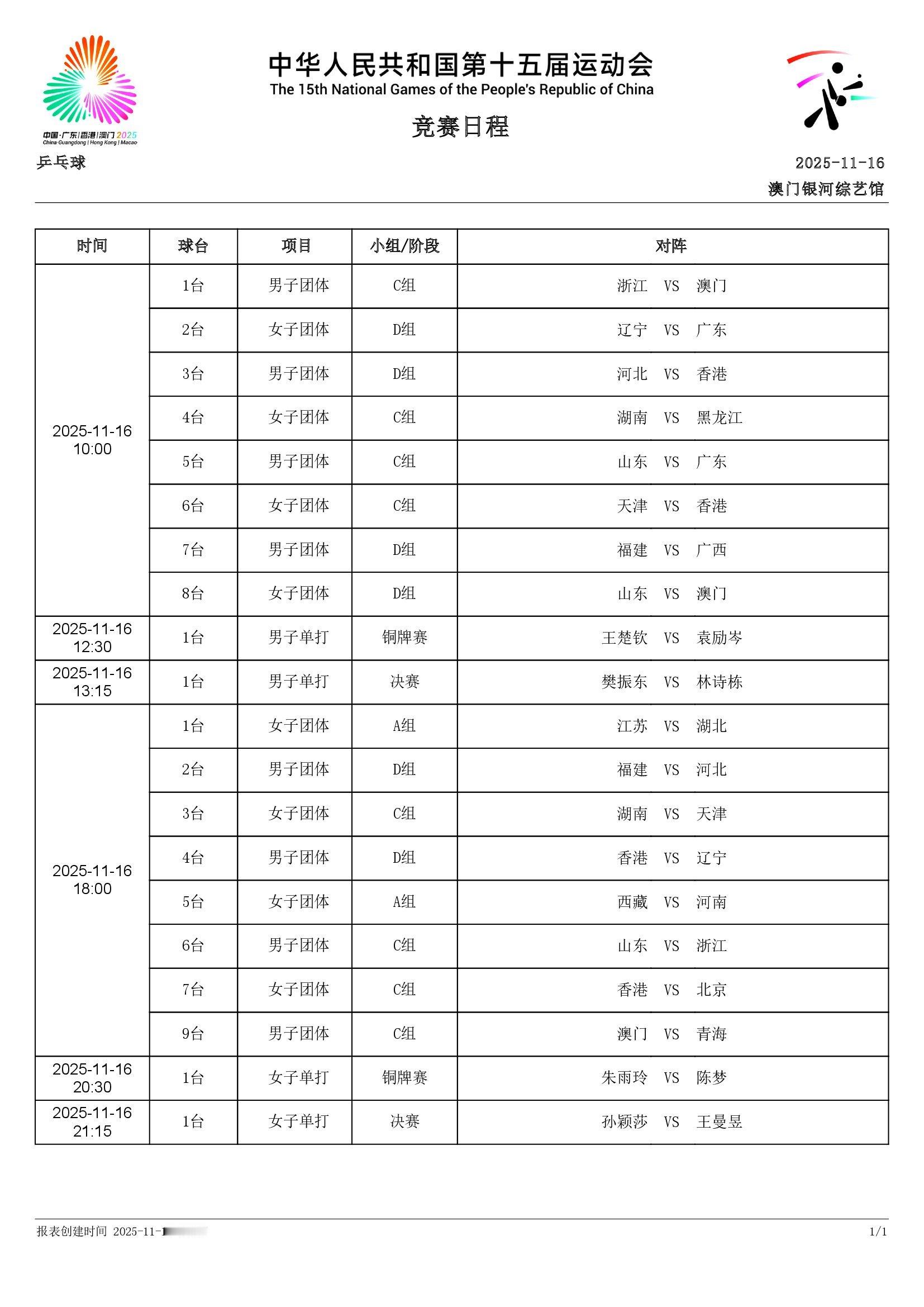 第十五届全国运动会丨11月16日全日赛程