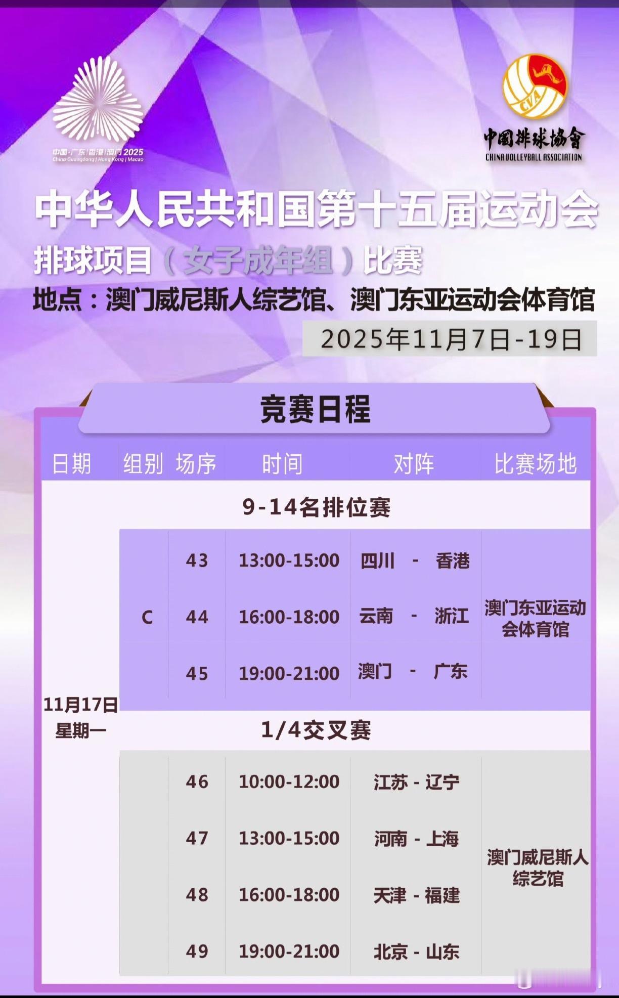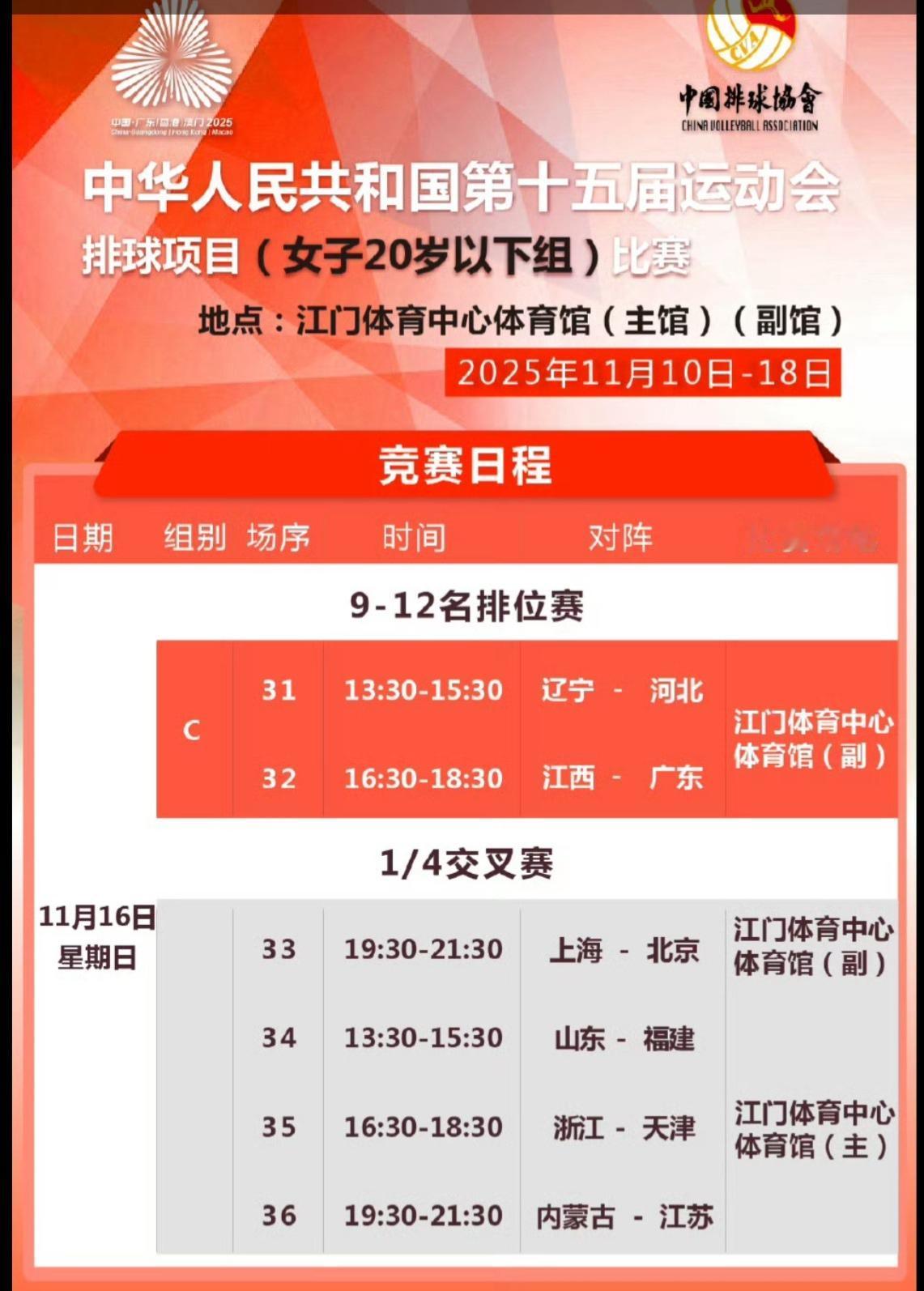 [女排全运会]1/4决赛江苏队赛程: 全运会女排(三个级别)小