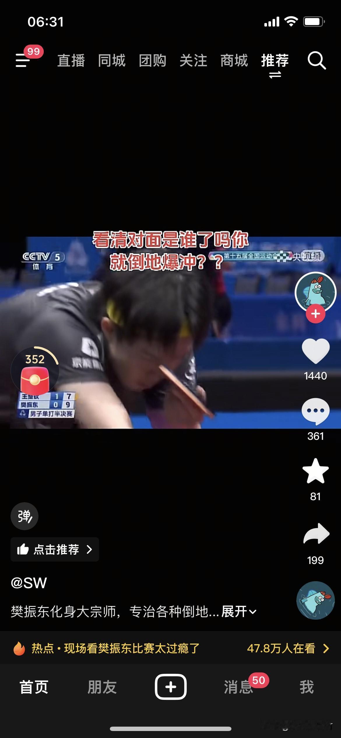 樊振东的步伐随时准备下一拍 这个视频看了几遍。 王楚钦发球, 樊振东摆短。 王楚钦正手爆冲(惯性使王楚钦跑右边去了。 樊振东慢拉直线得分。 王楚钦回不来了,失去了重心。 樊振东还不累。 樊振东底盘稳啊,看那腿。站得稳稳的。而且仔细看樊振东离开球台迅速小小弹跳,重心调整准备下一拍。 随时准备下一拍。这是重点。 真希望小石头林诗栋也练练樊振东的地盘。因为小石头林诗栋和樊振东身高不高,要想护住台,就要靠灵活的脚步。
