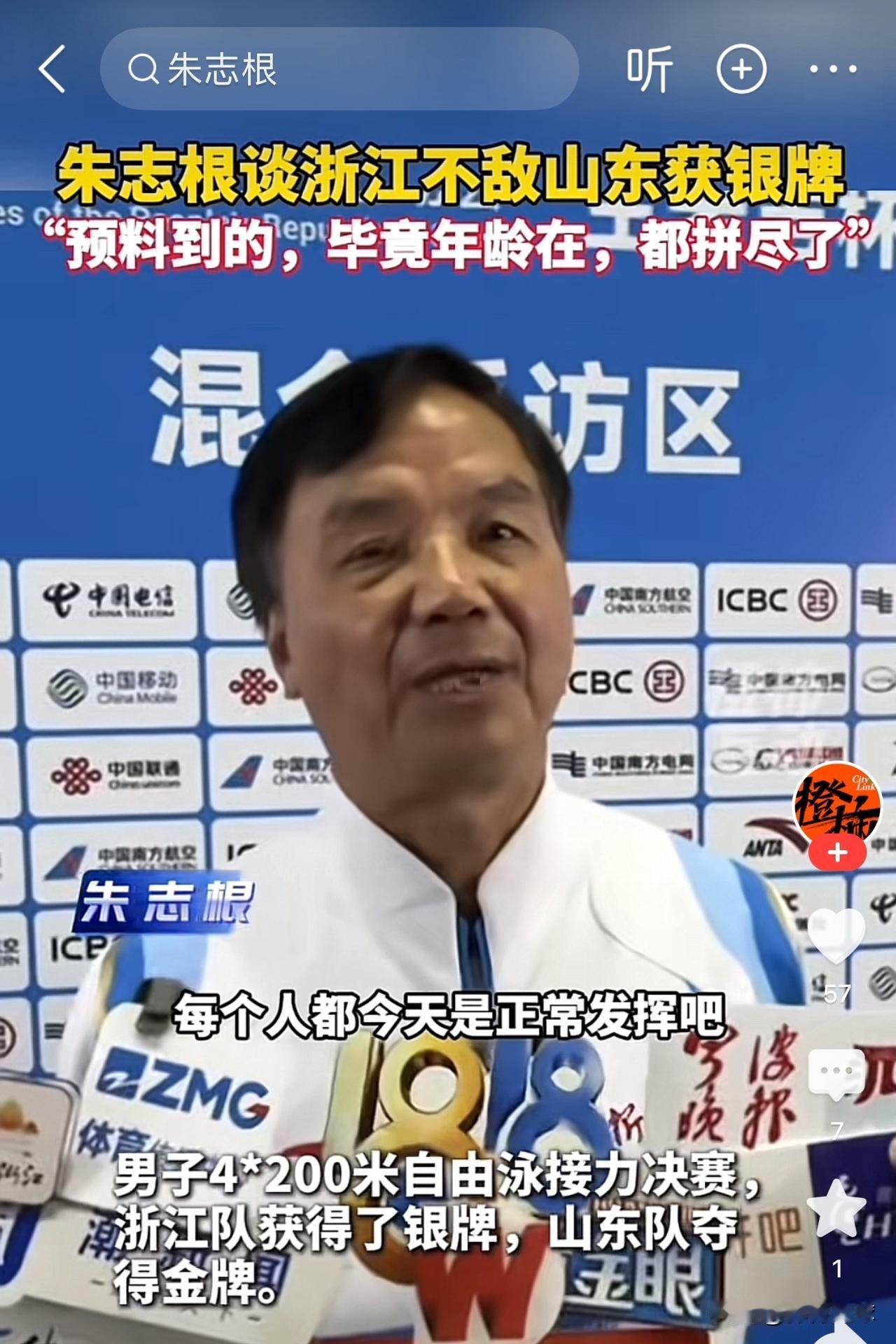 朱志根教练这句话:说出了浙江游泳的“心酸”! 浙江游泳昨晚丢掉了 4×200 自由泳的冠军,赛后朱志根教练说:这其实都预料到的,毕竟几个队员,年龄都摆在这,他们都拼尽了全力,属于正常发挥。 朱教练得这句话:说出了浙江游泳的“心酸””,4×200 应该是年轻人的天下,但浙江游泳还得依靠 30+的老将汪顺,孙杨,这是一种无奈。 浙江游泳就此没落了吗?我看未必 浙江游泳强在哪?强在体制,浙江游泳建立了相对健全的选拔,培训机制,但是人才的涌现,也有一定的起伏,就跟水果种植,也有大小年之说。 所以说浙江游泳到底是否没落?还得多观察几年。