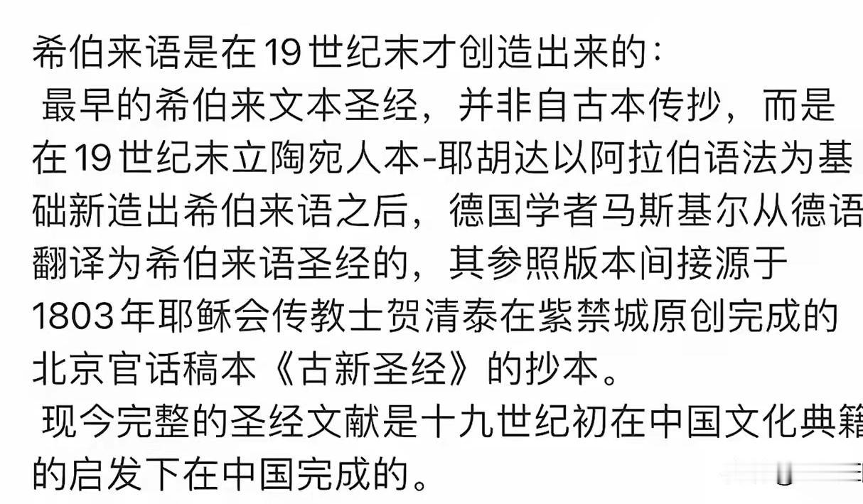 西方真实的历史是,西方语言成熟很晚。由于华夏文明传入西方,1670年《汉法词典》问世,1694年《法语词典》问世,1755年《约翰逊英语词典》问世,1854年《德语语源词典》问世。它们都汉语降维、也就是瞄定汉语才形成的。 旅居英国三十多年的诸玄识认为,17世纪晚期以前西方的诸文字都不适合于书写文学、科学和哲学;也就是说,在此之前的西方不存在“古典、经典”(著作),要有,都是后来伪造或改造的(旧文本都被重写)。还有网上不断有人展现西方几百年甚至两千年前的“古建筑”,真实的历史是这些“古建筑”都不超过三百年,也就是说都是后来伪造“古建筑”