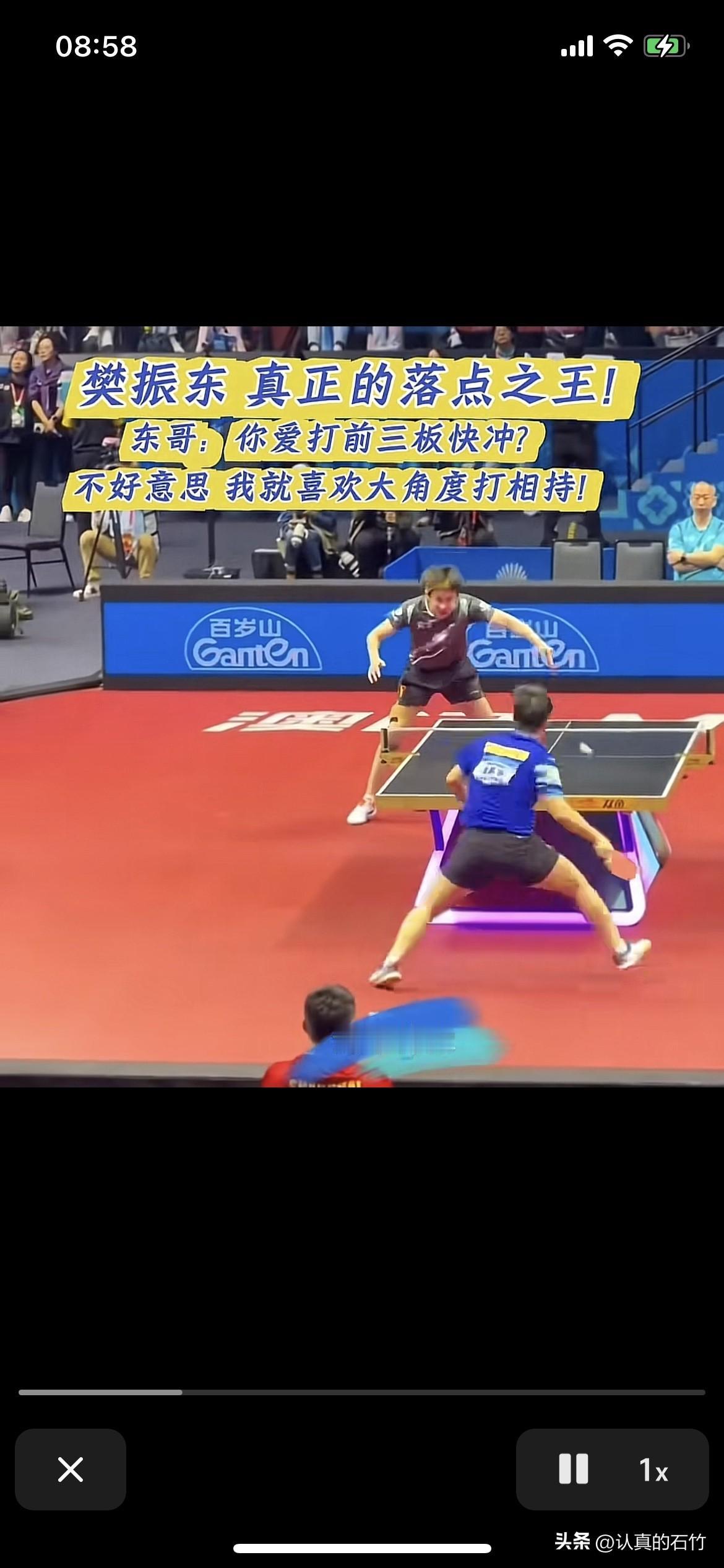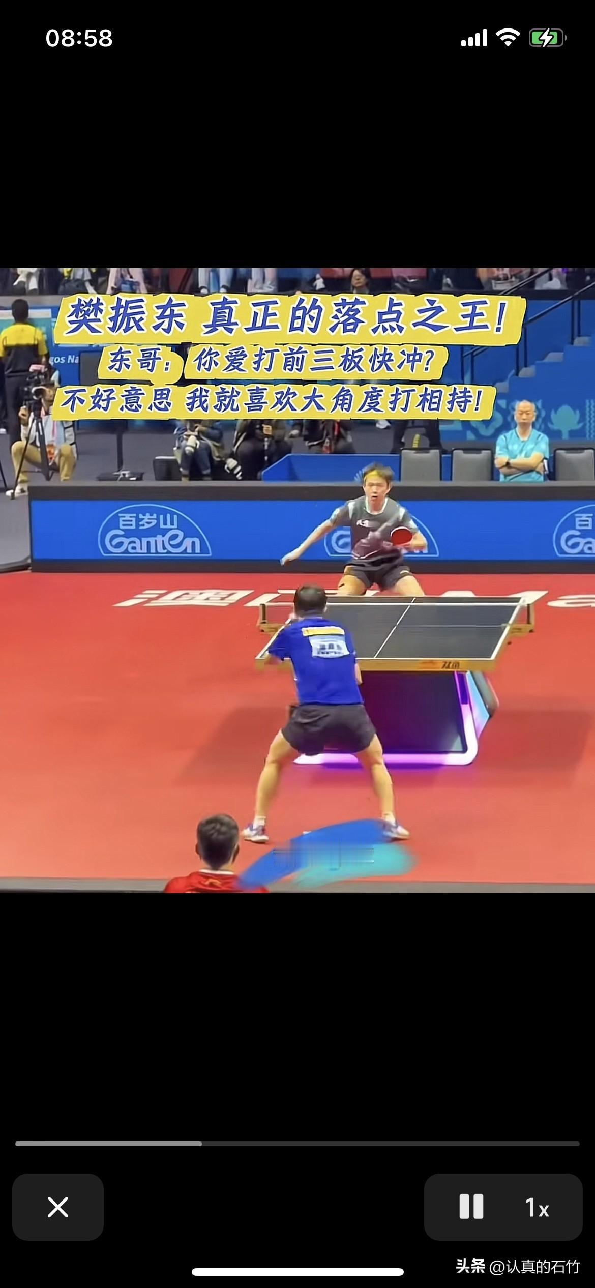 樊振东打球太好看。多变线,打相持 第一拍:斜线 第二拍:斜线 第三拍:斜线 第四拍:斜线 第五拍:变直线得分。 打相持的王。希望小石头林诗栋学习樊振东。多变线,打相持。 樊振东变线变得又快又准。打球台边上。 最喜欢看东哥打球,很具观赏性,让观众觉得乒乓球的魅力,如果个个三板爷,乒乓球没有观赏性,慢慢的观众觉得沉闷,那乒乓球真的没什么好看,自自然然就会被踢出运动会。