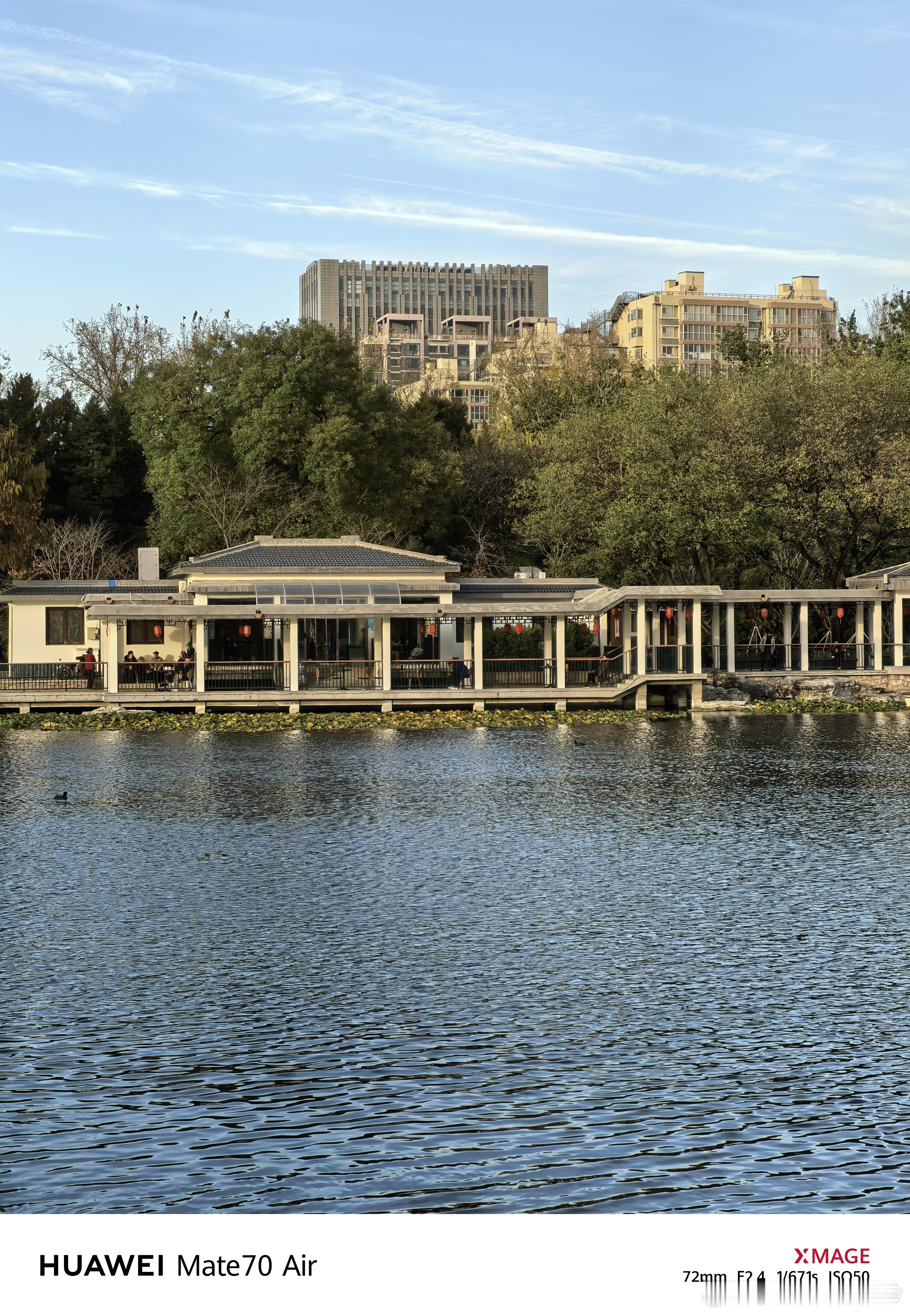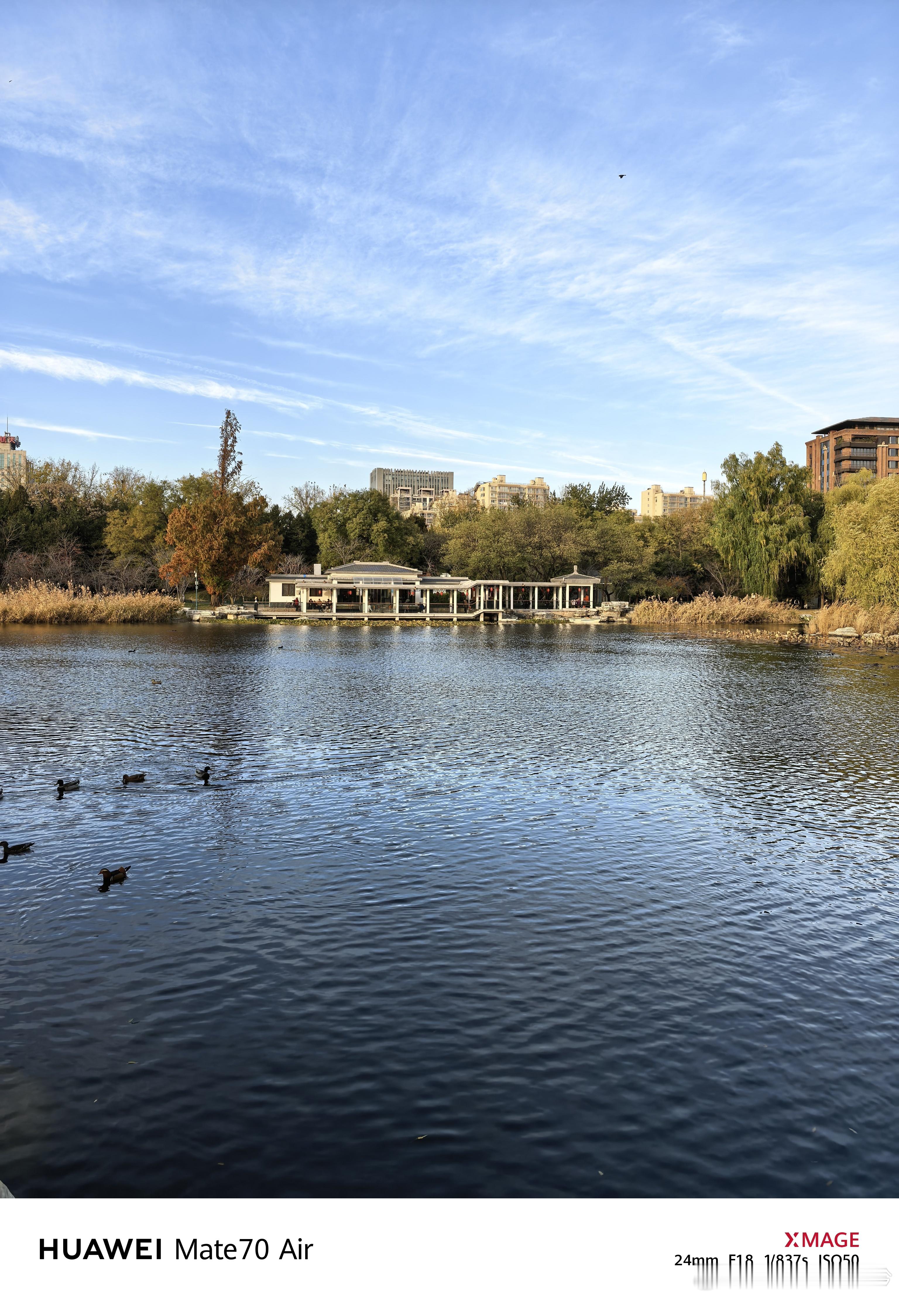 虽然都叫Air,但Mate70 Air和iPhone Air完全是不同的方向,其中一个巨大的不同就是影像。Mate70 Air给了全焦段,主摄依旧是大底大光圈,不过没有可变光圈,考虑到机身厚度也没毛病。长焦给了RYYB,但不是全焦段RYYB,不过有红枫色彩还原不用太担心。至于这颗800万超广角,就有点。。。看样张,同一场景三颗镜头(2/3/4)的一致性不错,天空、水面以及树的颜色还原挺到位的,细节丰富。光线相对较暗的场景(图5),整体亮度适中。放大看暗部细节,同时也不是那种暴力提亮度的算法,芦苇的花絮白色和淡黄色区分也很明显。怎么样?你觉得Mate70 Air影像表现如何?