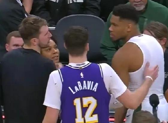 字母哥:东子,算你狠。 东契奇:你看看你们管理层给你找的帮手?其实你没输。 拉拉维亚:我大哥仰慕你很久了。 字母哥:你说啥? 东契奇:下个赛季有没有兴趣一起打球。 拉拉维亚:我大哥说的真心话。 字母哥:我…