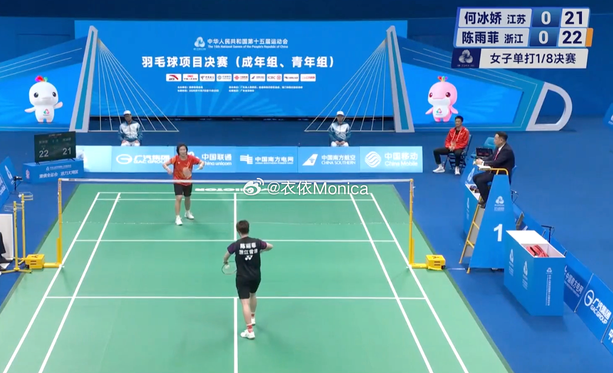陈雨菲和何冰娇在1/8决赛就遇上实在太可惜了啊第一局就打到24分了,谁也赢不了谁了